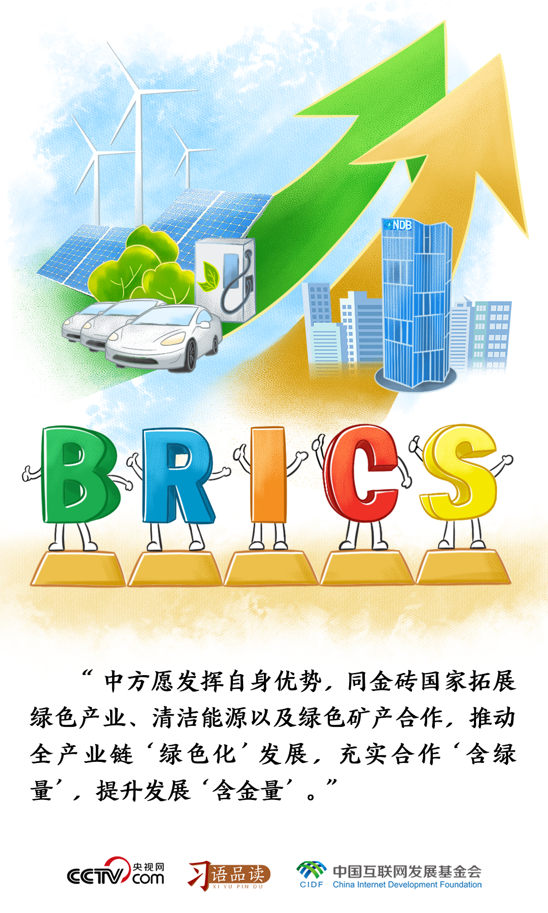 习主席强调,中方愿同金砖国家拓展绿色产业、清洁能源以及绿色矿产合作,推动全产业链“绿色化”发展,充实合作“含绿量”,提升发展“含金量”。