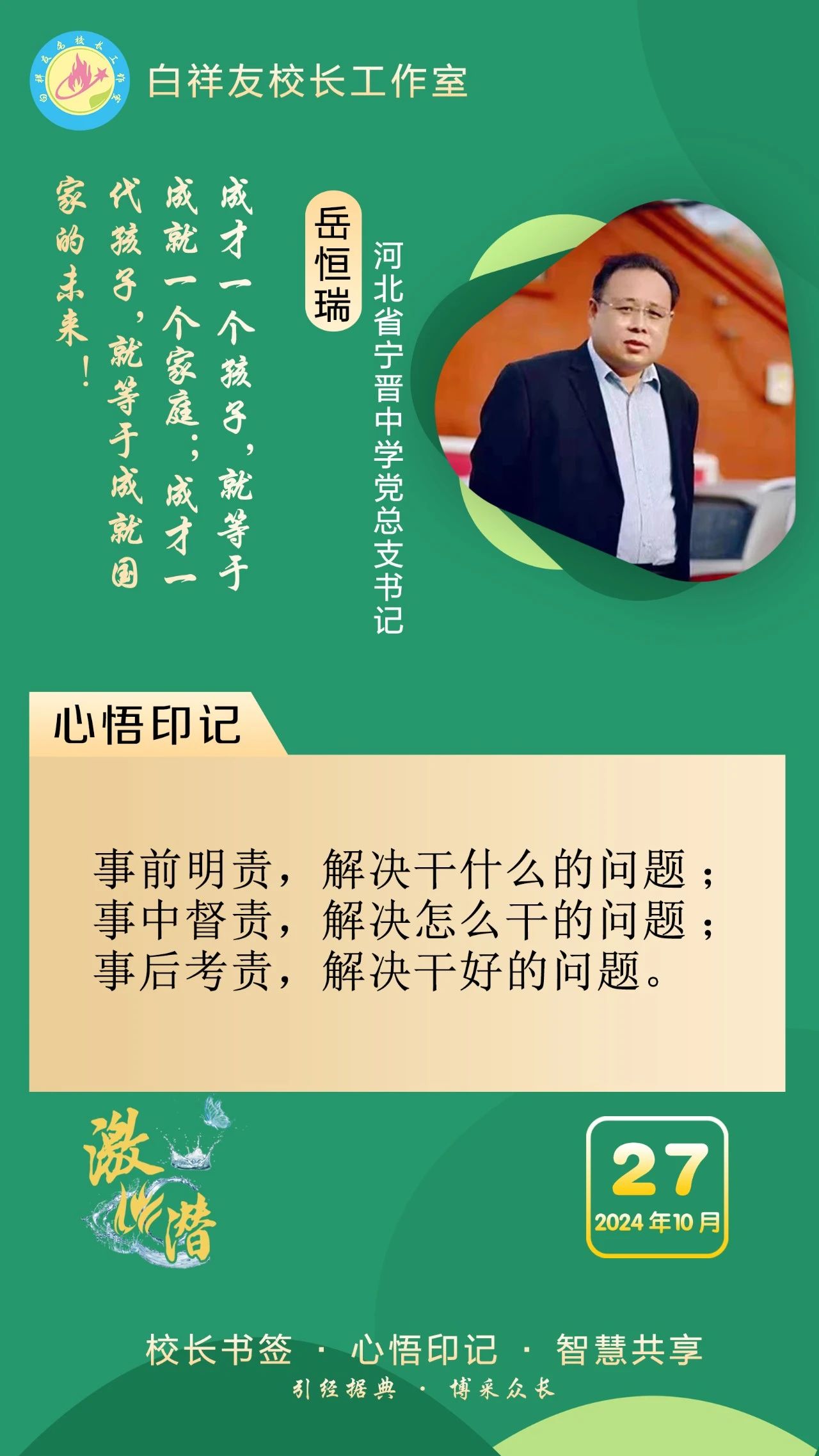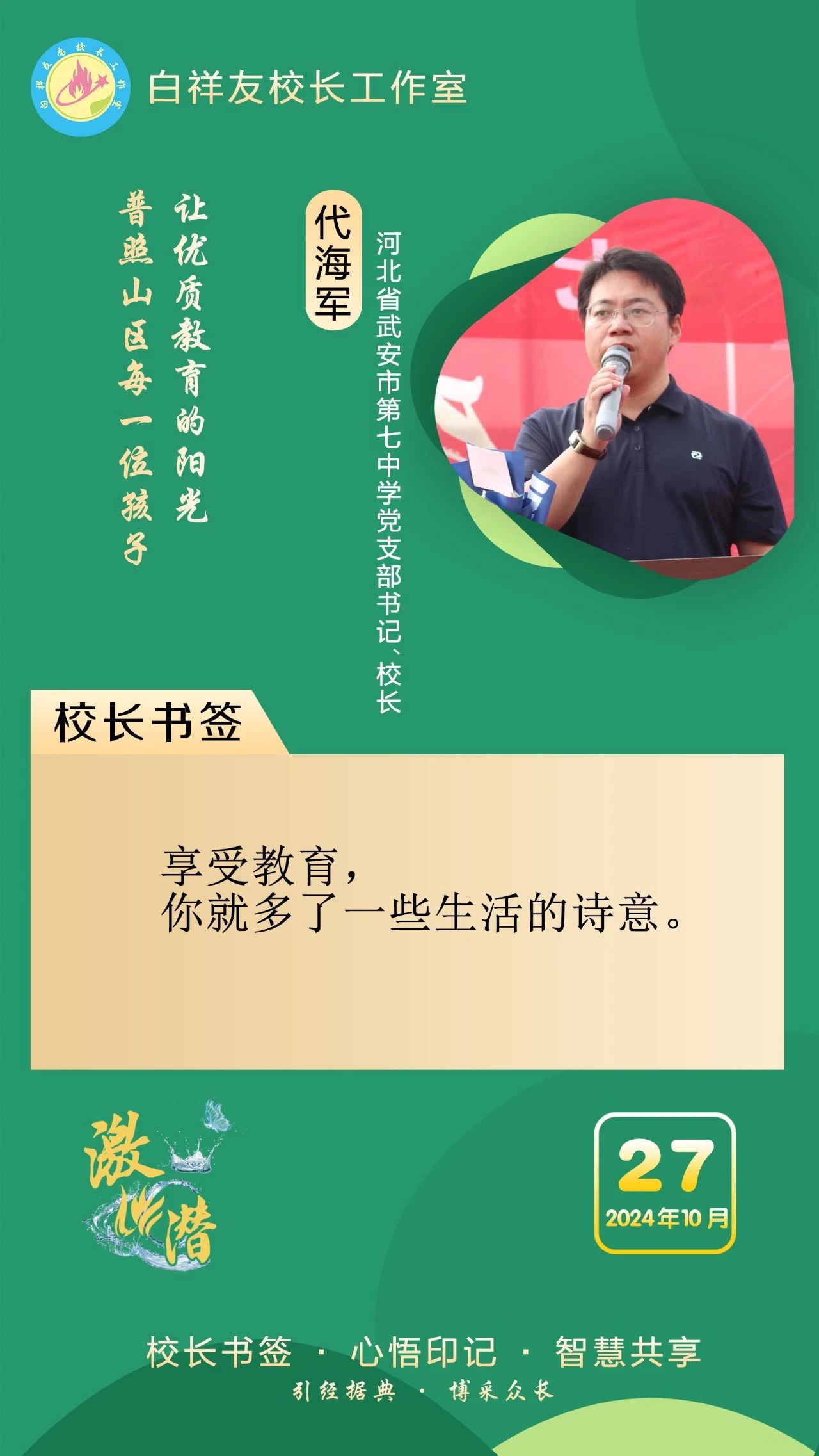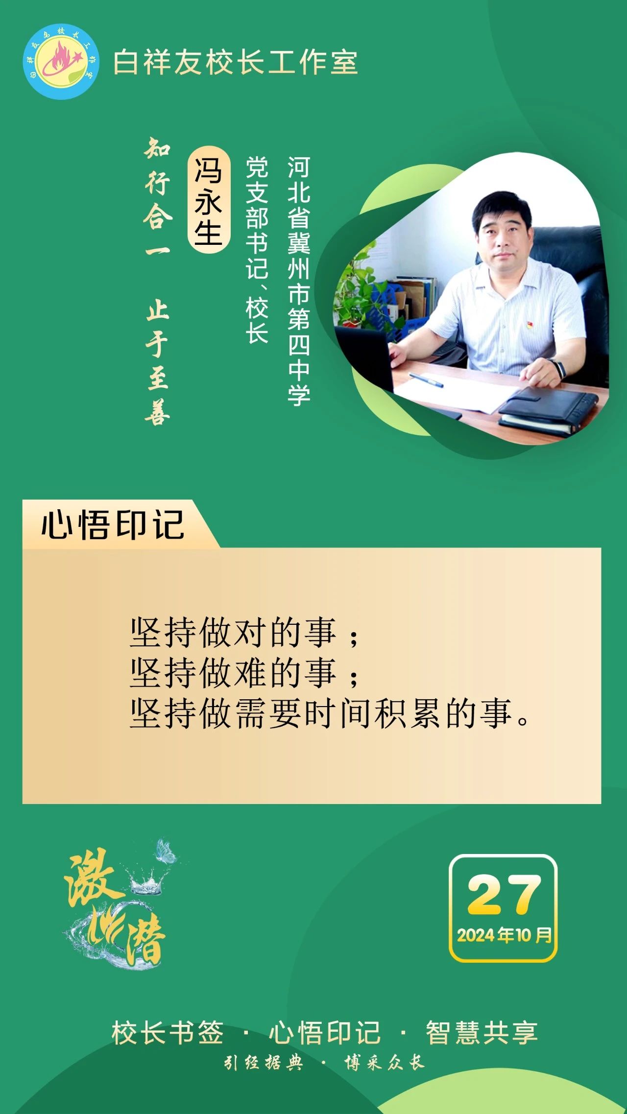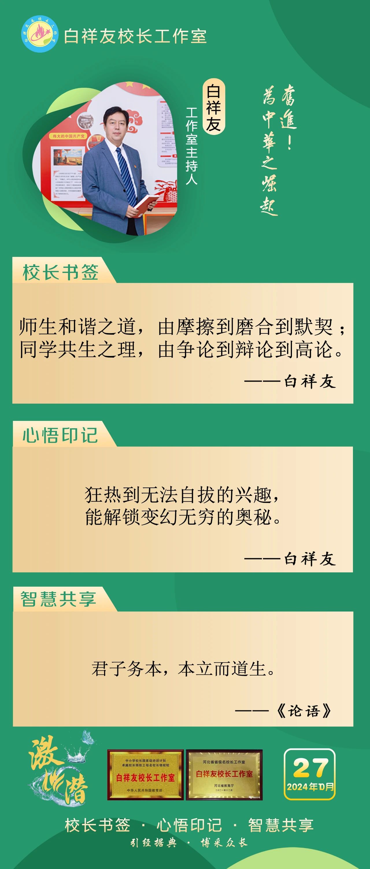 “白祥友校长工作室”成立于2019年4月,是教育部“国培计划”中小学名校长领航工程、河北省首批名校长工作室,目前省内外成员校37个。工作室坚持“资源共享、智慧共融、互助共赢”理念,已成为思想碰撞的交流场,资源共享的品牌站,成果展示的辐射源。