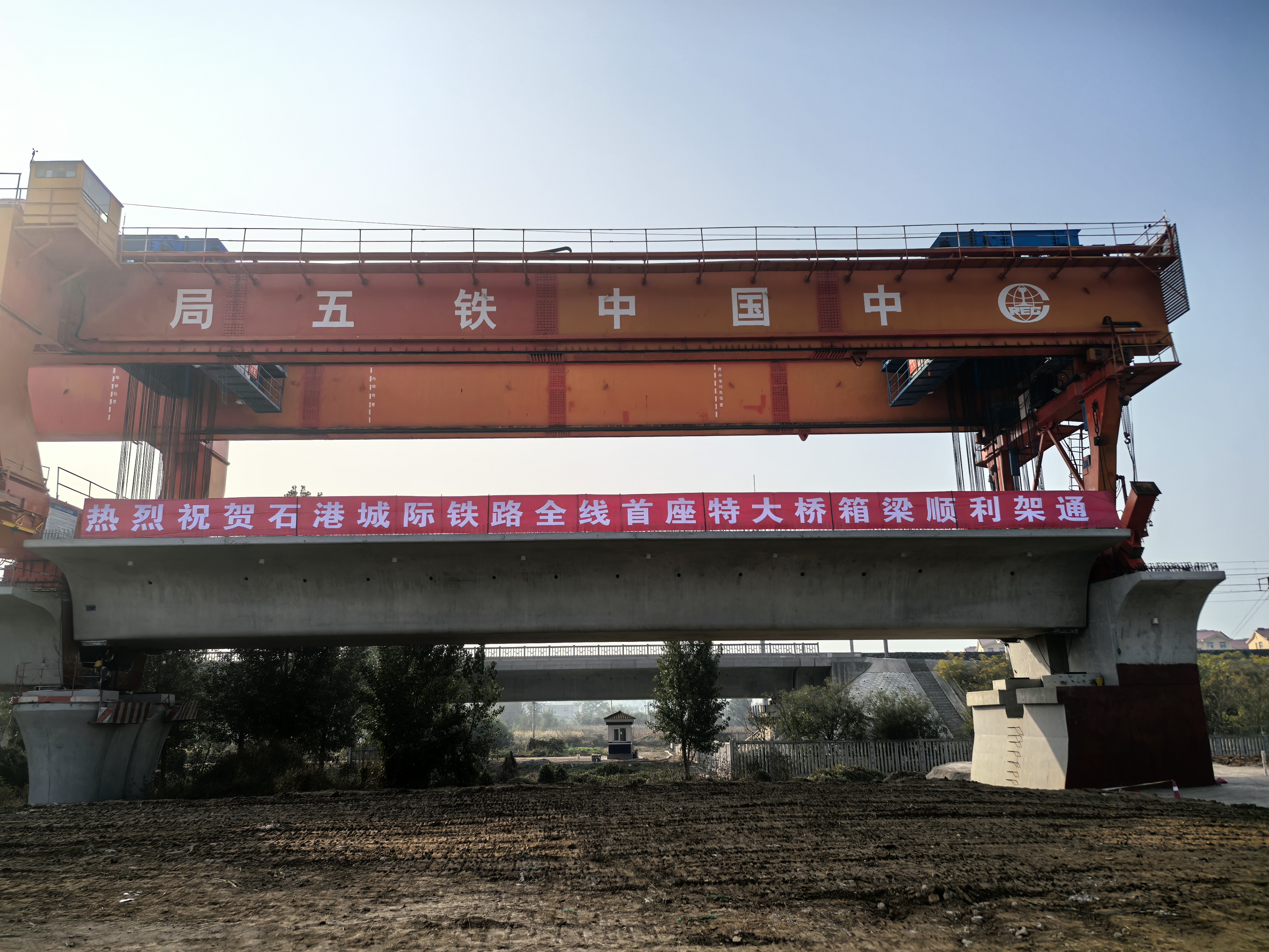 10月29日,由中铁五局承建的,位于衡水市桃城区、高新区及武邑县境内的李家村跨大广高速特大桥成功架通。这是石港城际铁路全线最长的特大桥,也是全线首座架通的特大桥。