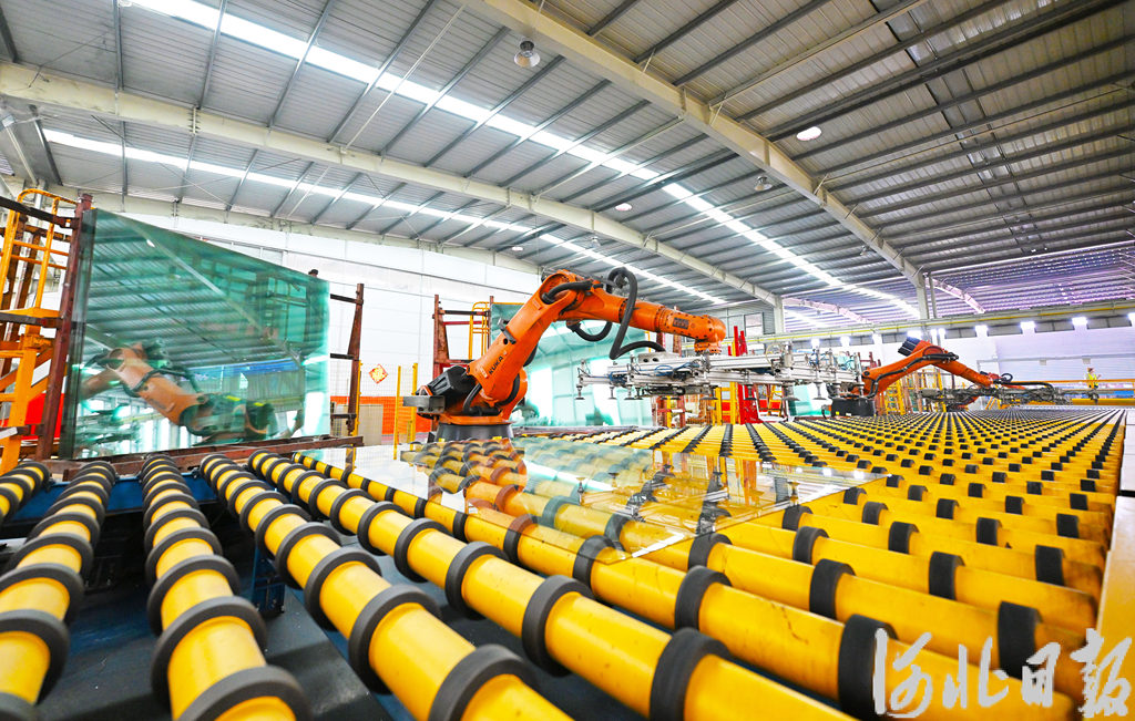 7月15日,环保绩效A级企业沙河市鸿昇玻璃有限公司机械手在生产线工作。河北日报记者 赵永辉摄