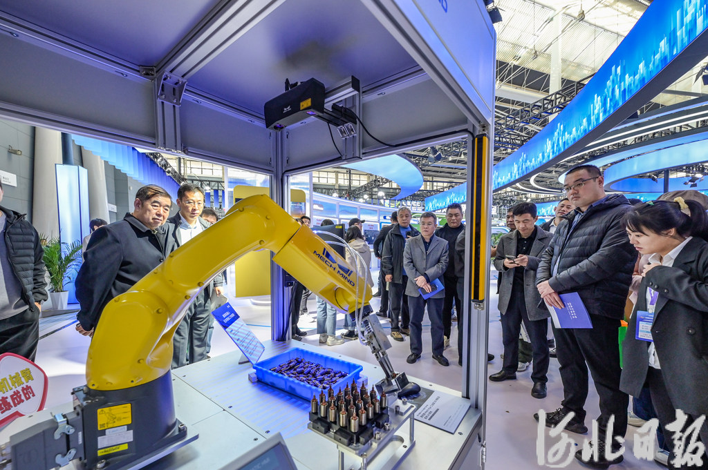 10月24日,2024中国国际数字经济博览会在石家庄(正定)国际会展中心开幕。图为与会者在参观梅卡曼德机器人。河北日报记者田明摄