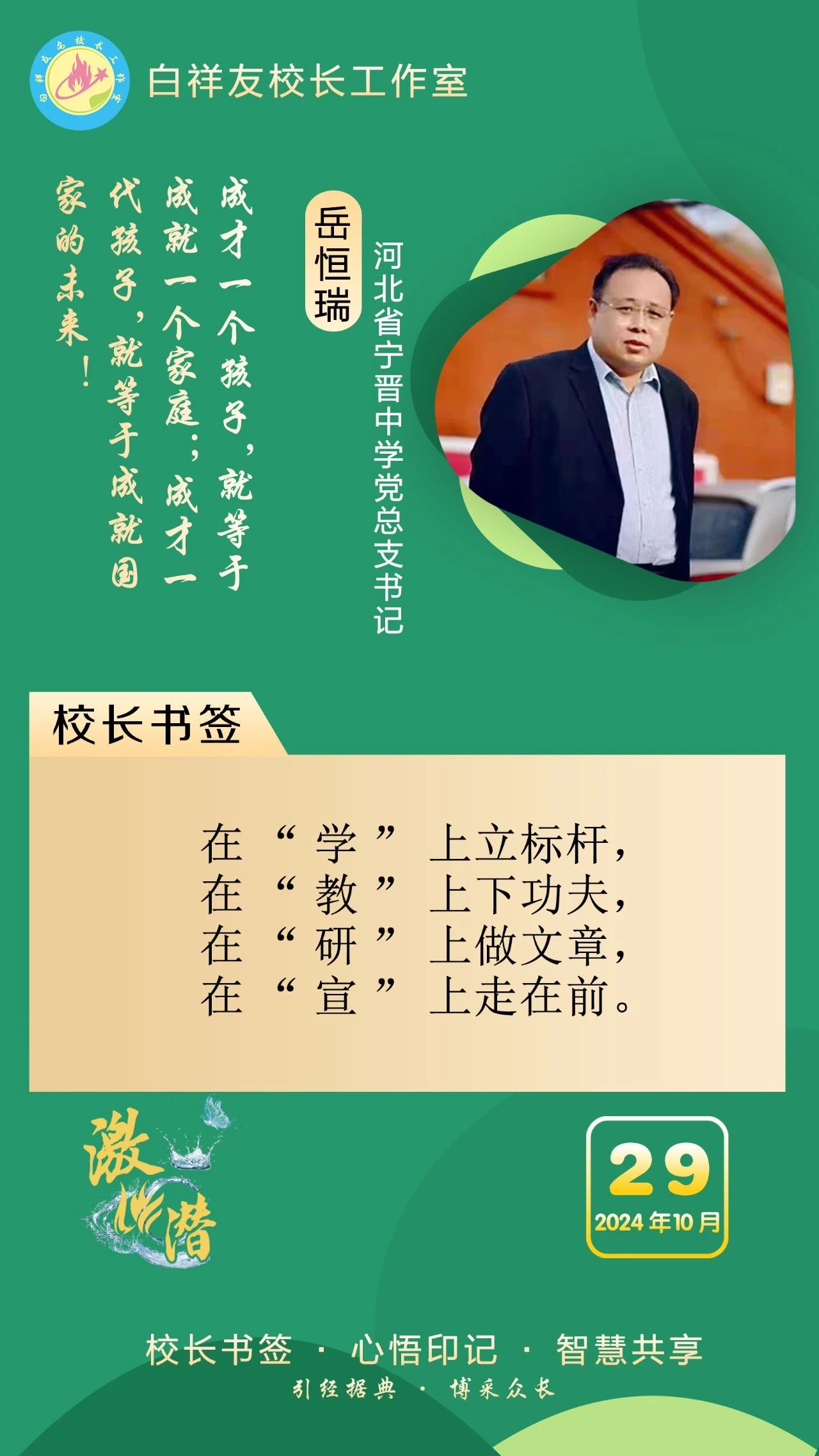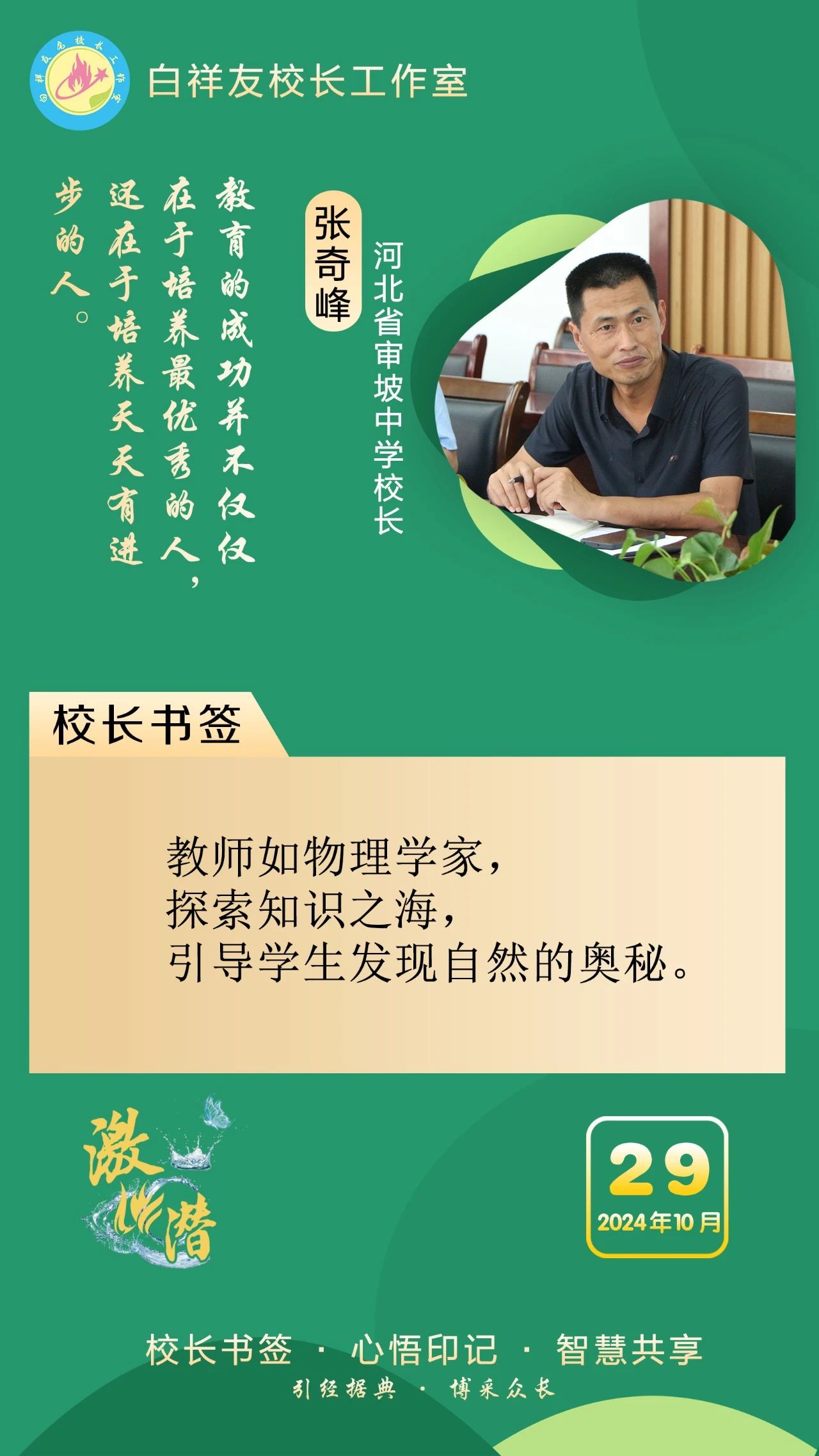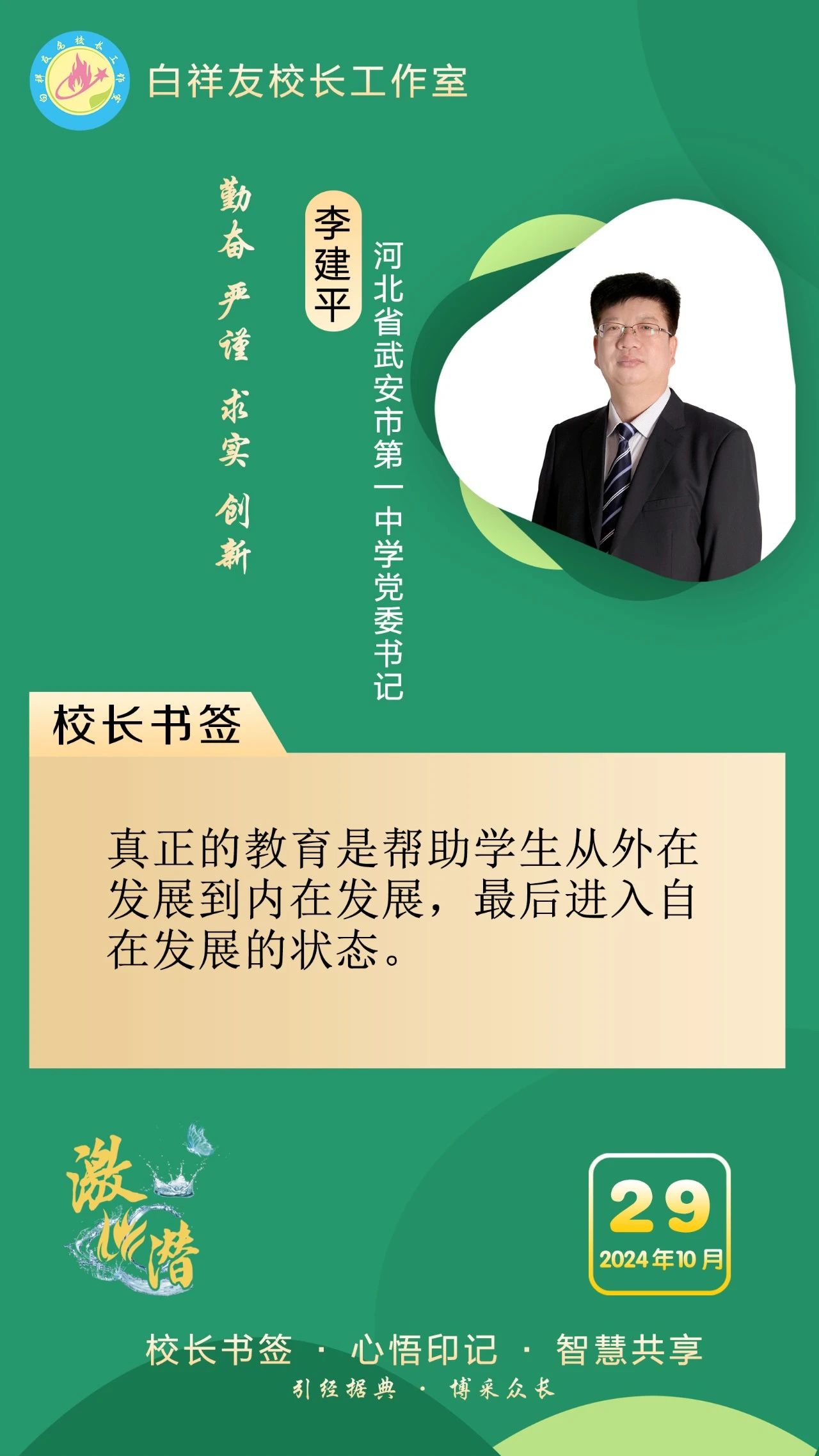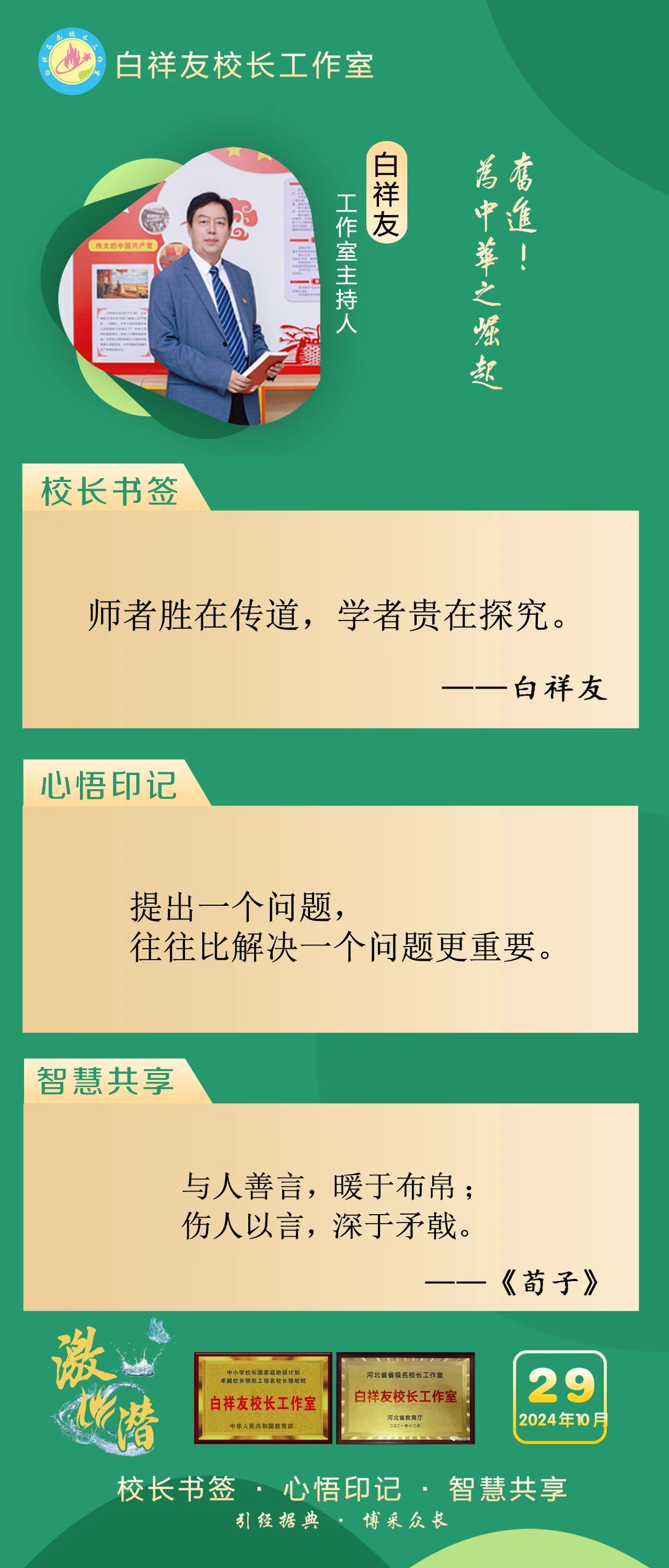“白祥友校长工作室”成立于2019年4月,是教育部“国培计划”中小学名校长领航工程、河北省首批名校长工作室,目前省内外成员校37个。工作室坚持“资源共享、智慧共融、互助共赢”理念,已成为思想碰撞的交流场,资源共享的品牌站,成果展示的辐射源。