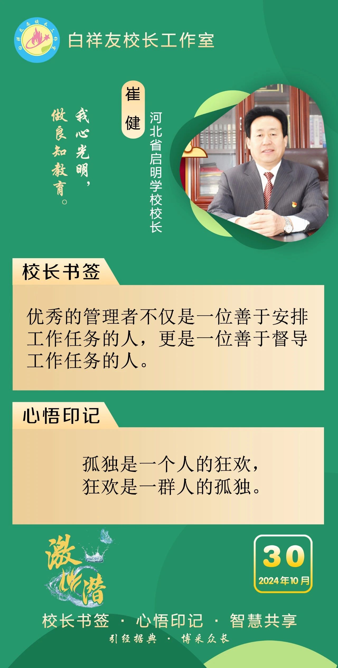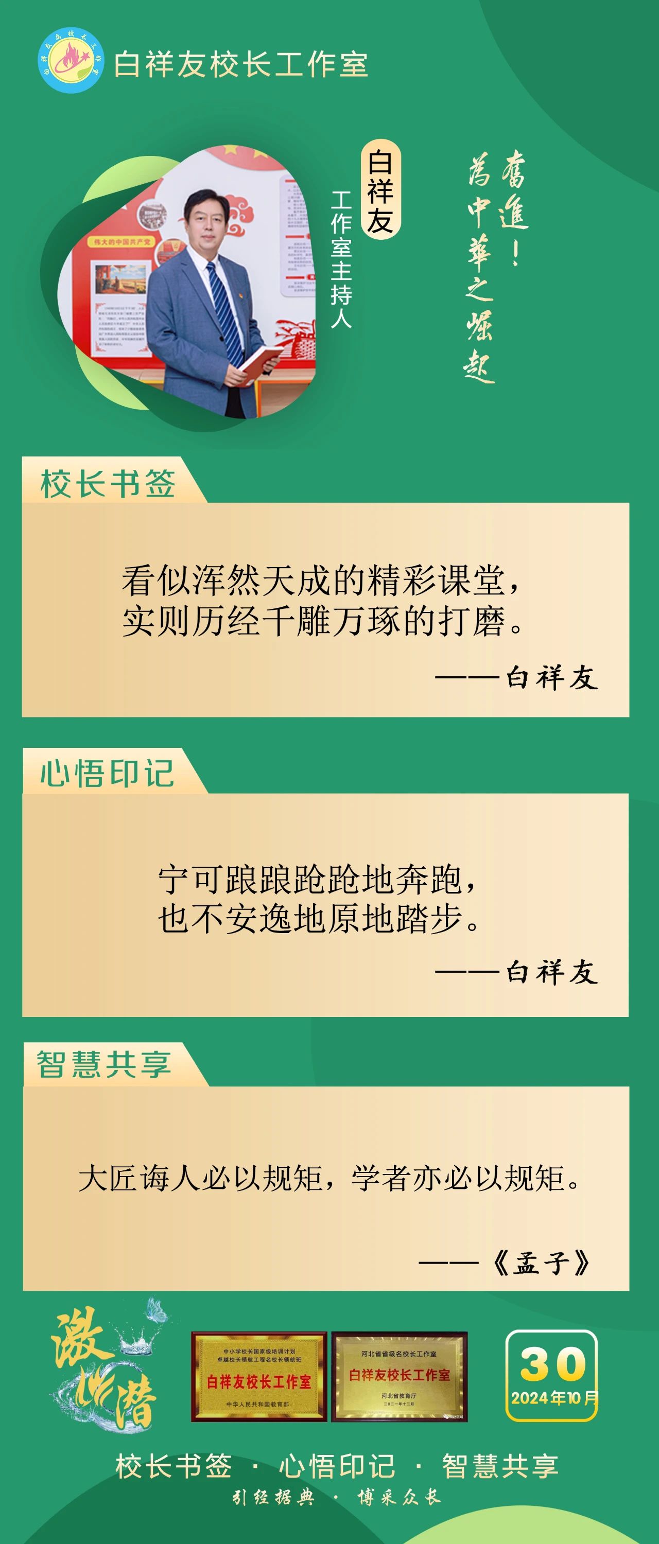 “白祥友校长工作室”成立于2019年4月,是教育部“国培计划”中小学名校长领航工程、河北省首批名校长工作室,目前省内外成员校37个。工作室坚持“资源共享、智慧共融、互助共赢”理念,已成为思想碰撞的交流场,资源共享的品牌站,成果展示的辐射源。