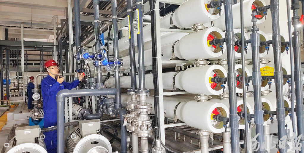 河北旭阳能源有限公司员工在焦化浓水提盐零排项目车间巡检。(资料片)河北日报记者 赵永辉摄