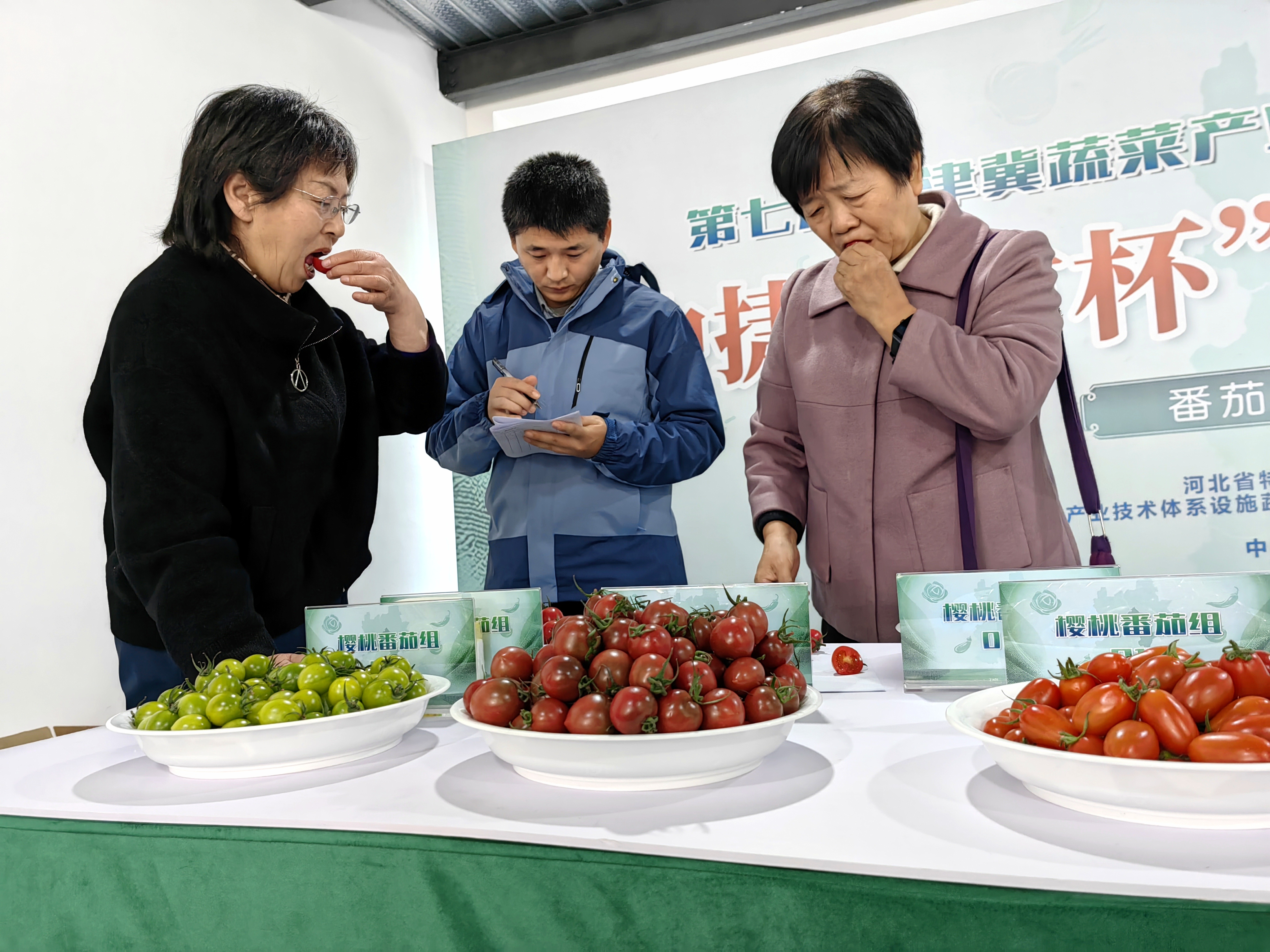 赛事按单果重分为大果型、中果型和樱桃番茄3组,每组有3名专家评委同时评选。评分标准有基础分和果实品质指标分值两项,其中基础分包括自有品牌、绿色有机认证和包装情况,果实品质指标分值包括可溶性固形物(即糖度)、口感品质和外观品质。