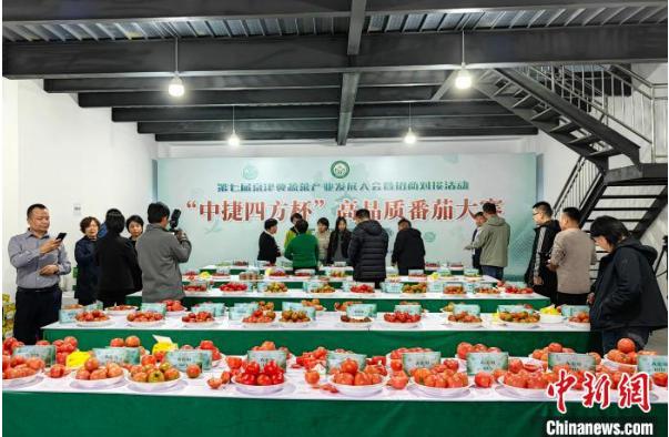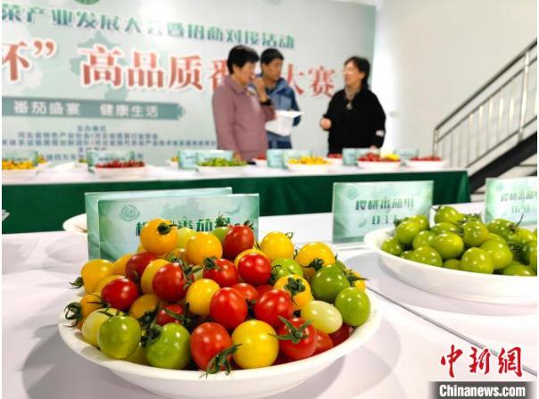 11月3日,第七届京津冀蔬菜产业发展大会暨招商对接活动“中捷四方杯”高品质番茄大赛在位于河北省衡水市冀州区的北京新发地衡水(冀州)农副产品智慧物流中心开赛,来自河北省的63家经营主体选送118个番茄品种参赛。据介绍,番茄是河北省除白菜、黄瓜之外种植面积第三的特色农业作物,达上百万亩。赛事将持续至11月4日,最终评选出“番茄大王”3名,一等奖9名、二等奖18名、三等奖30名。图为11月3日,番茄大赛评审现场。 王天祥 摄