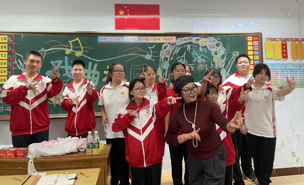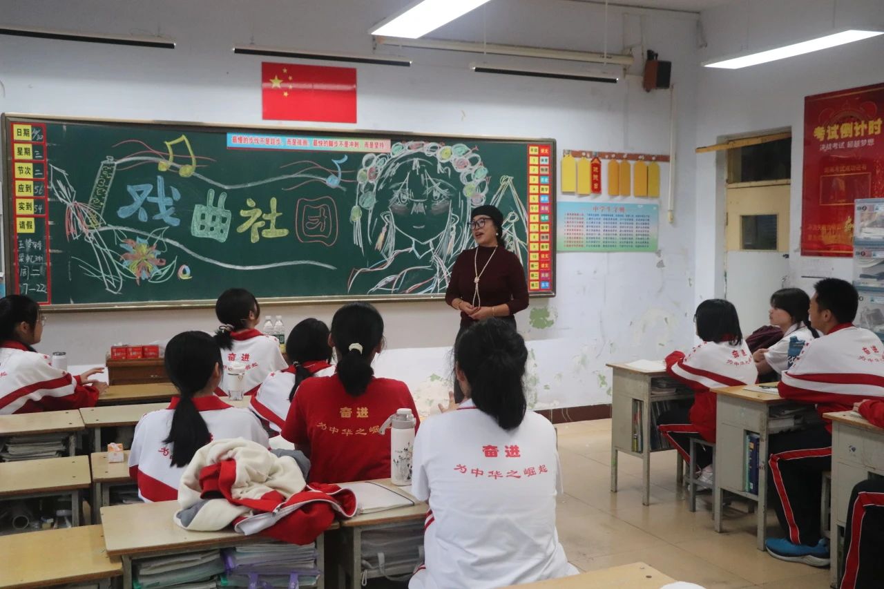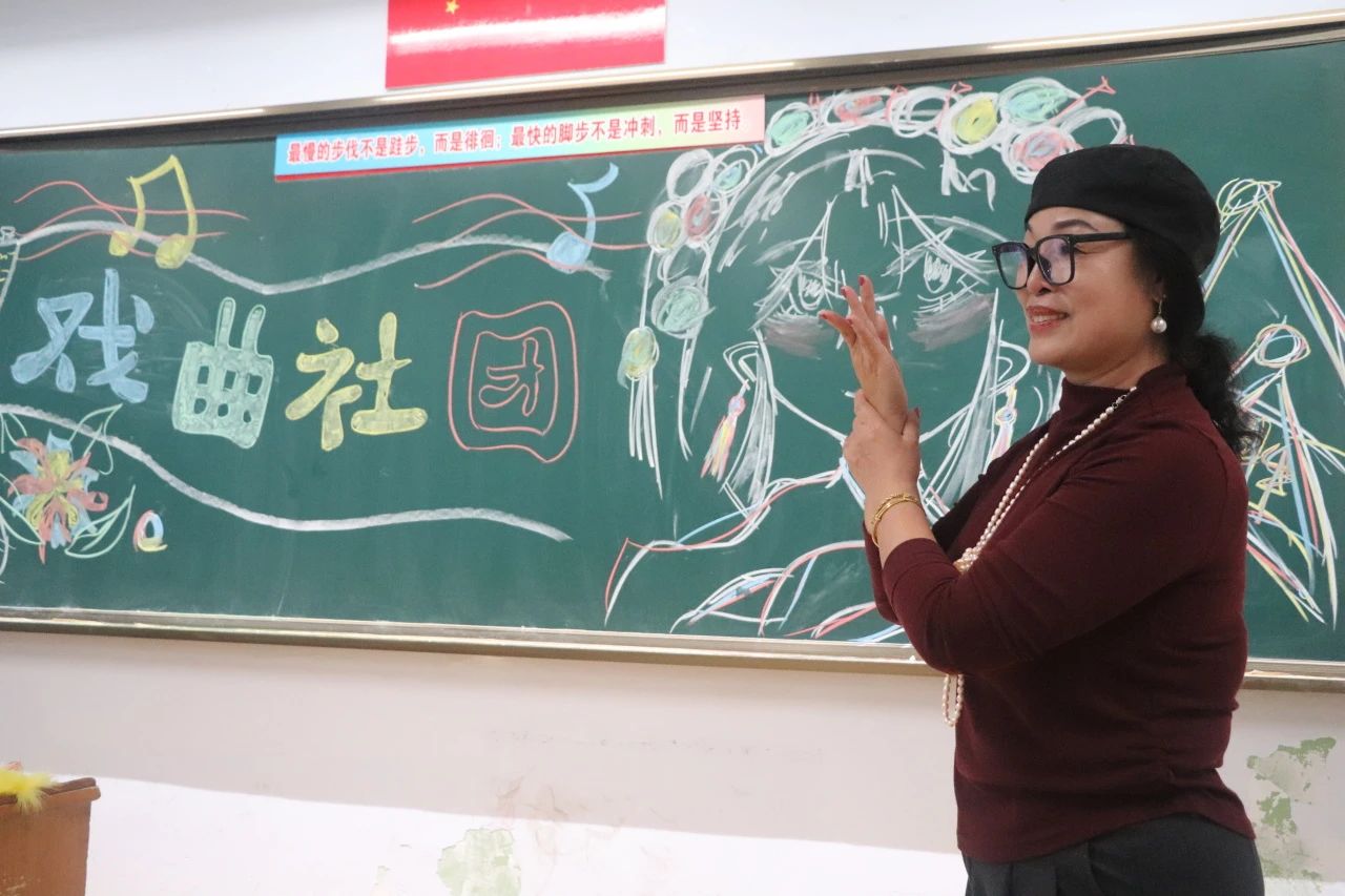 在衡水十三中戏曲社团,戏曲老师为大家演示了各种唱腔特色,戏曲的魅力深深吸引了同学们。同学们兴趣浓厚、虚心请教,并在老师的指导下共同完成了表演。
