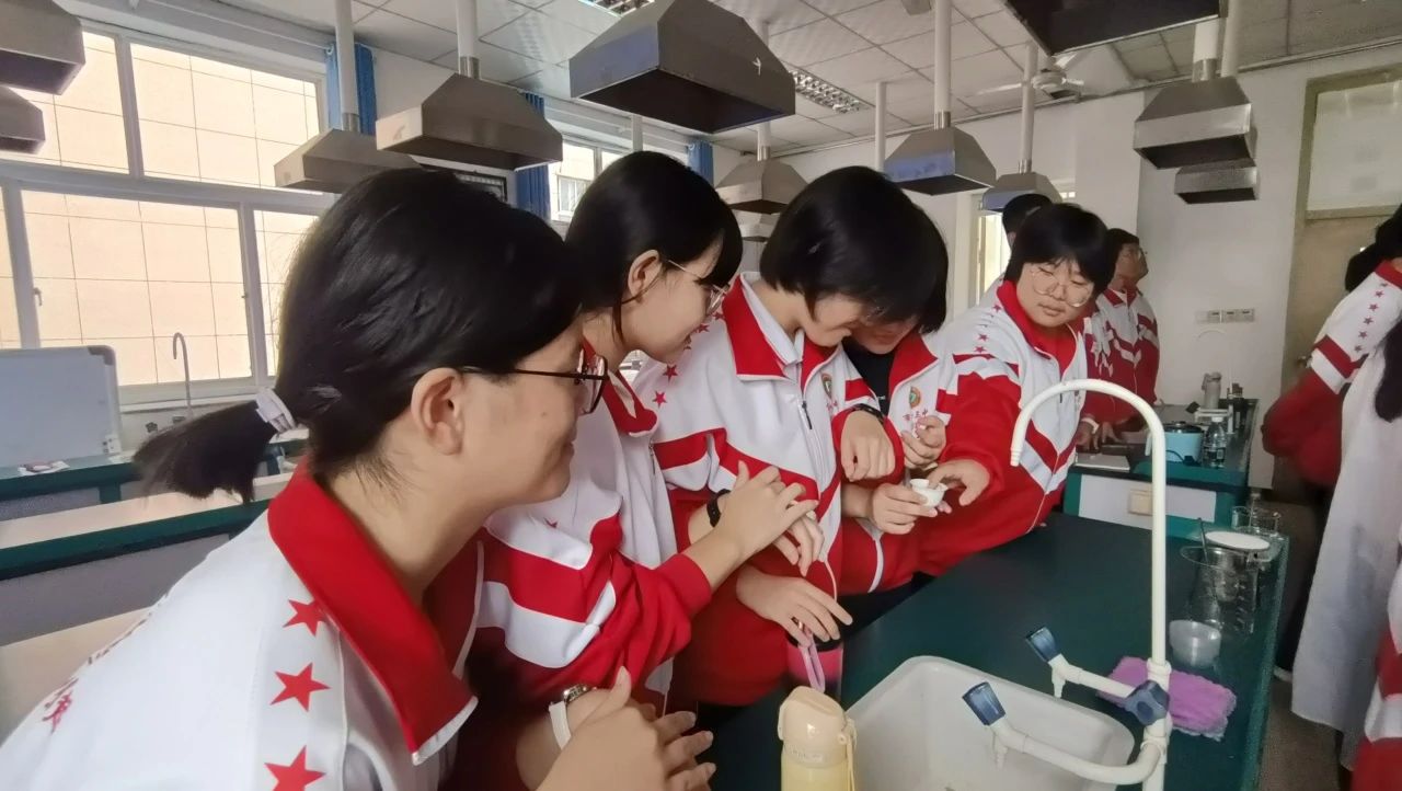 实验室里,老师们带领日用化学社团的同学们制作护手霜、柠檬纯露等日用品。原来化学是这样的有趣又实用。