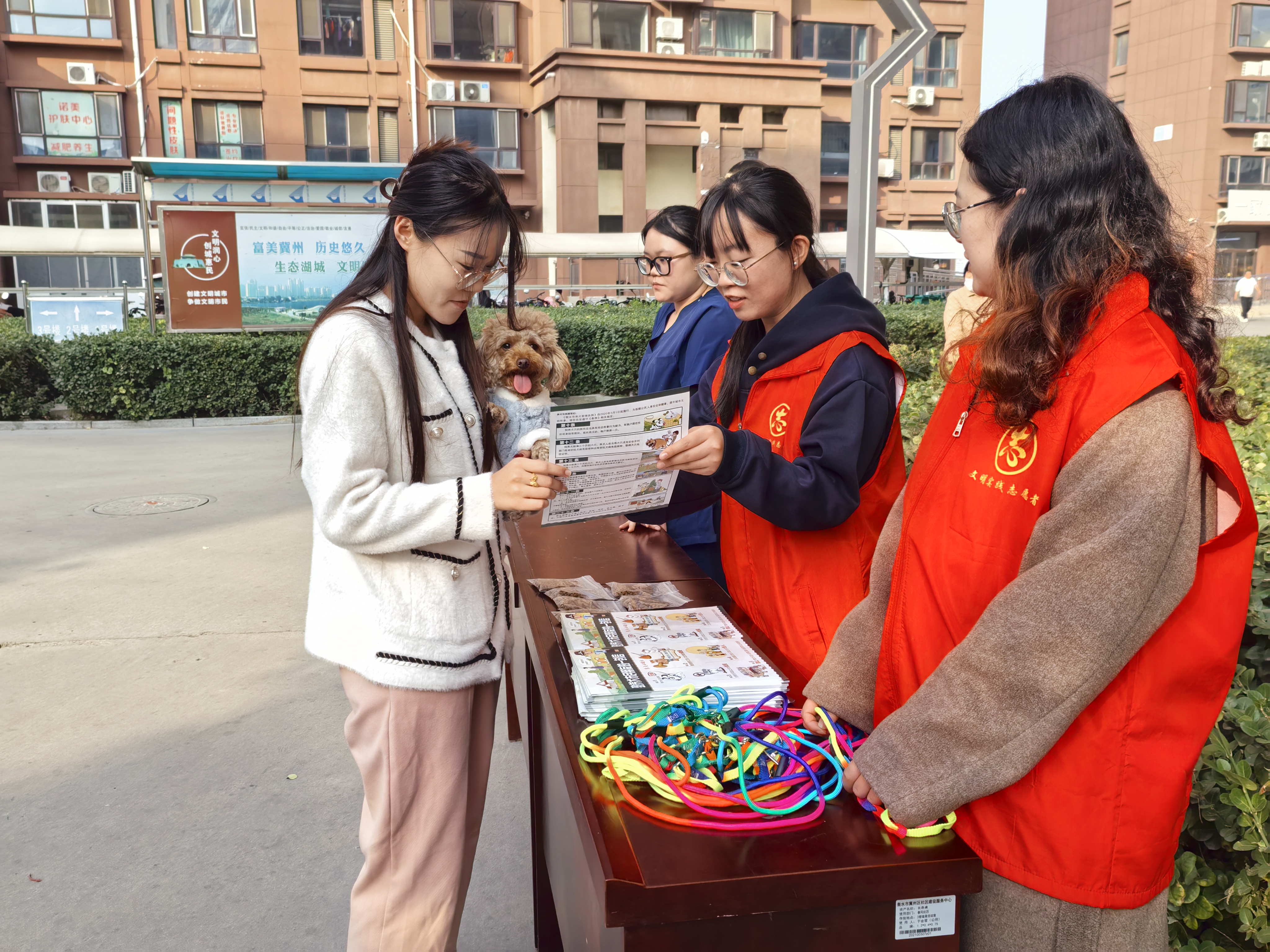 全面宣传,增强居民文明意识。各社区联合辖区物业服务企业,利用小区内的电子屏、小喇叭、居民微信群等宣传窗口以及发放宣传手册、开展文明实践活动等方式,加大依法养犬、文明养犬宣传教育力度,全面做好不文明养犬整治工作。11月4日,冀州区迎宾社区联合指尖创意工作坊开展“‘宠’我做起,争做文明养犬小标兵”主题宣传活动,通过观看文明养犬宣传视频、做手工、讲故事等方式,引导孩子们从小形成文明养犬的意识。