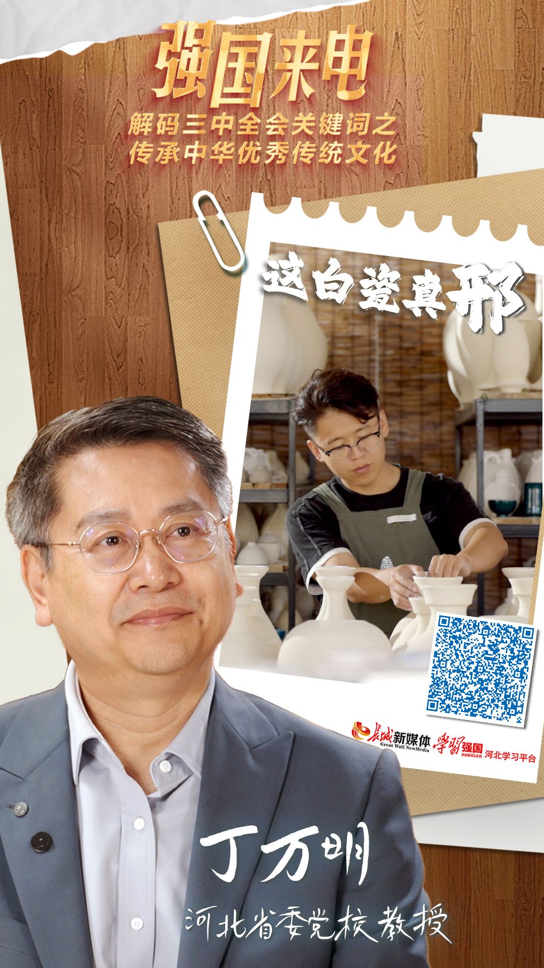 本期解码关键词“传承中华优秀传统文化”,带领大家回顾邢窑白瓷璀璨辉煌发展史,探寻新时代匠人传承技艺,创新推动邢白瓷“出圈”的生动故事,并据此开展讨论、交流观点。