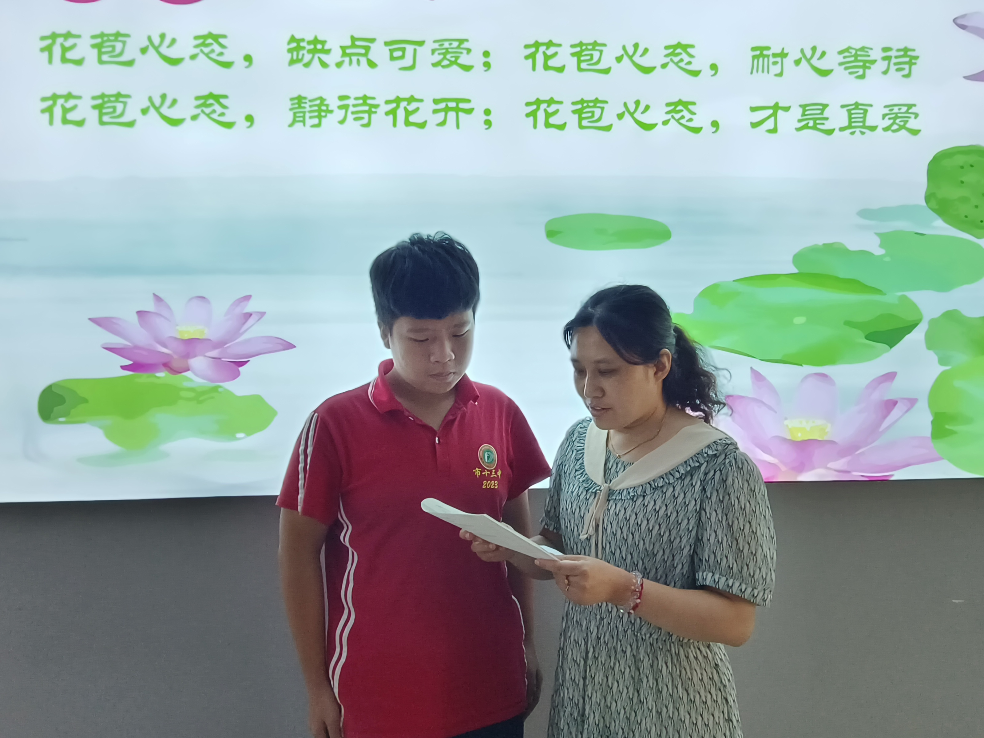 我们要时刻以一种“花苞心态”去看待学生的成长。白书记生动地阐释了“花苞心态”的意义——“花苞心态,缺点可爱;花苞心态,耐心等待;花苞心态,静待花开;花苞心态,才是真爱。”我们应该以“花苞心态”去爱每一位学生,有的同学“花期”很长,我们要有耐心、有信心,找准问题的关键点,因材施教,让我们的孩子都能自豪地扬眉吐气地走出十三中!