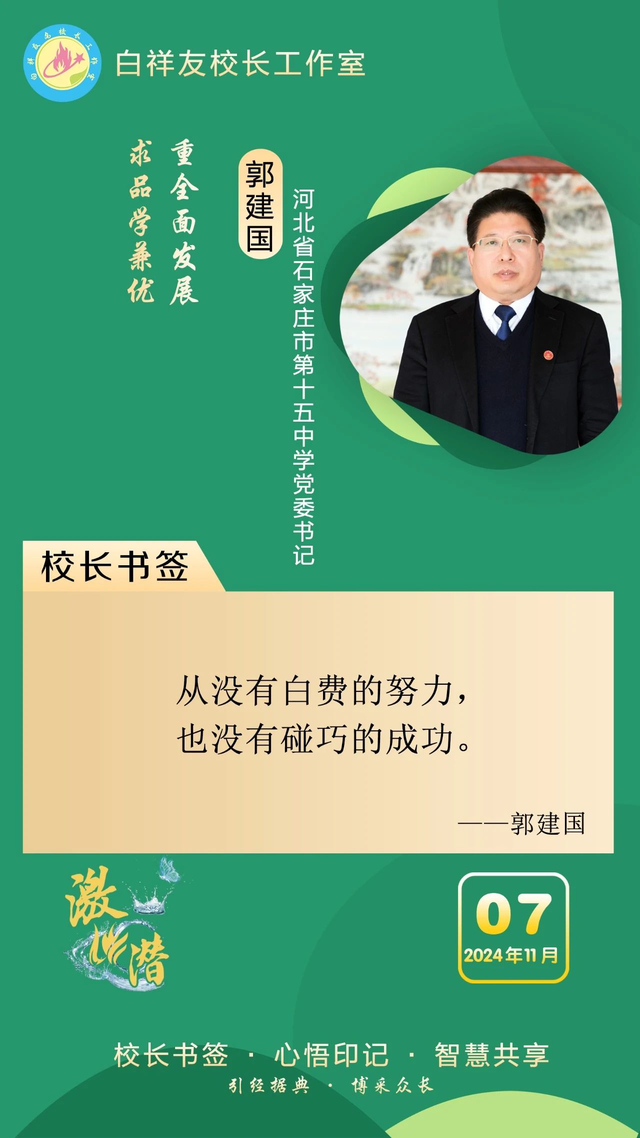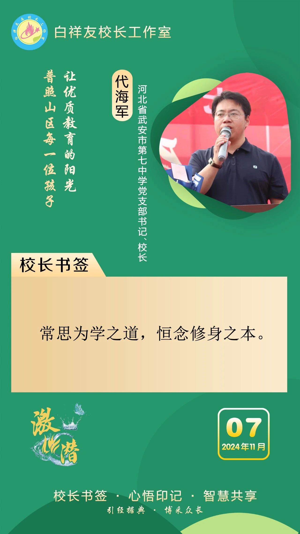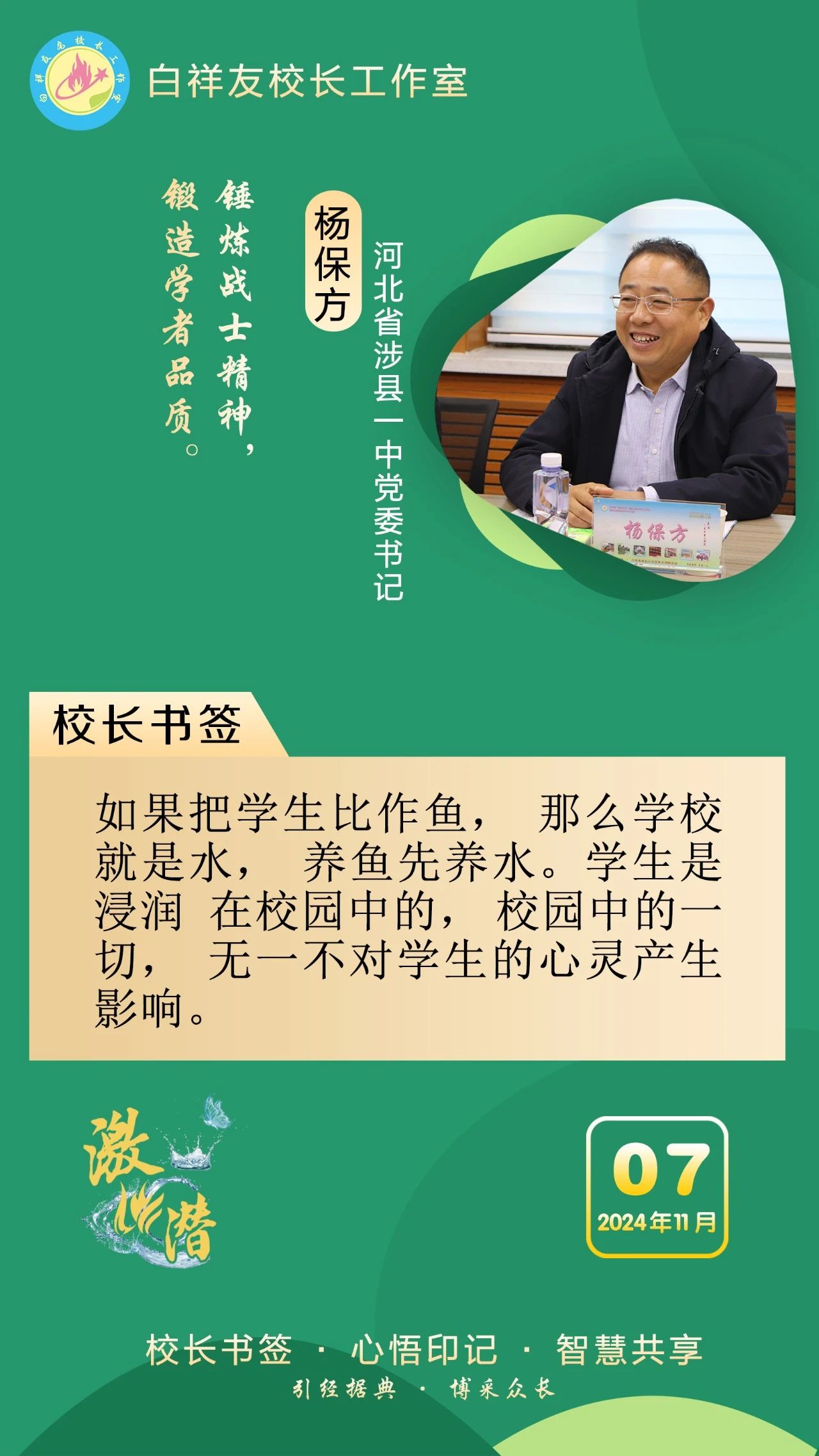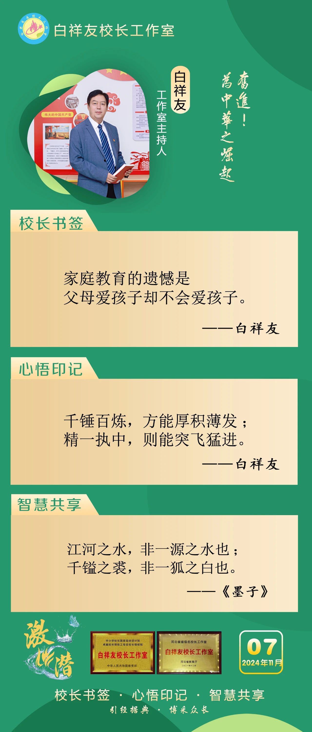 “白祥友校长工作室”成立于2019年4月,是教育部“国培计划”中小学名校长领航工程、河北省首批名校长工作室,目前省内外成员校37个。工作室坚持“资源共享、智慧共融、互助共赢”理念,已成为思想碰撞的交流场,资源共享的品牌站,成果展示的辐射源。