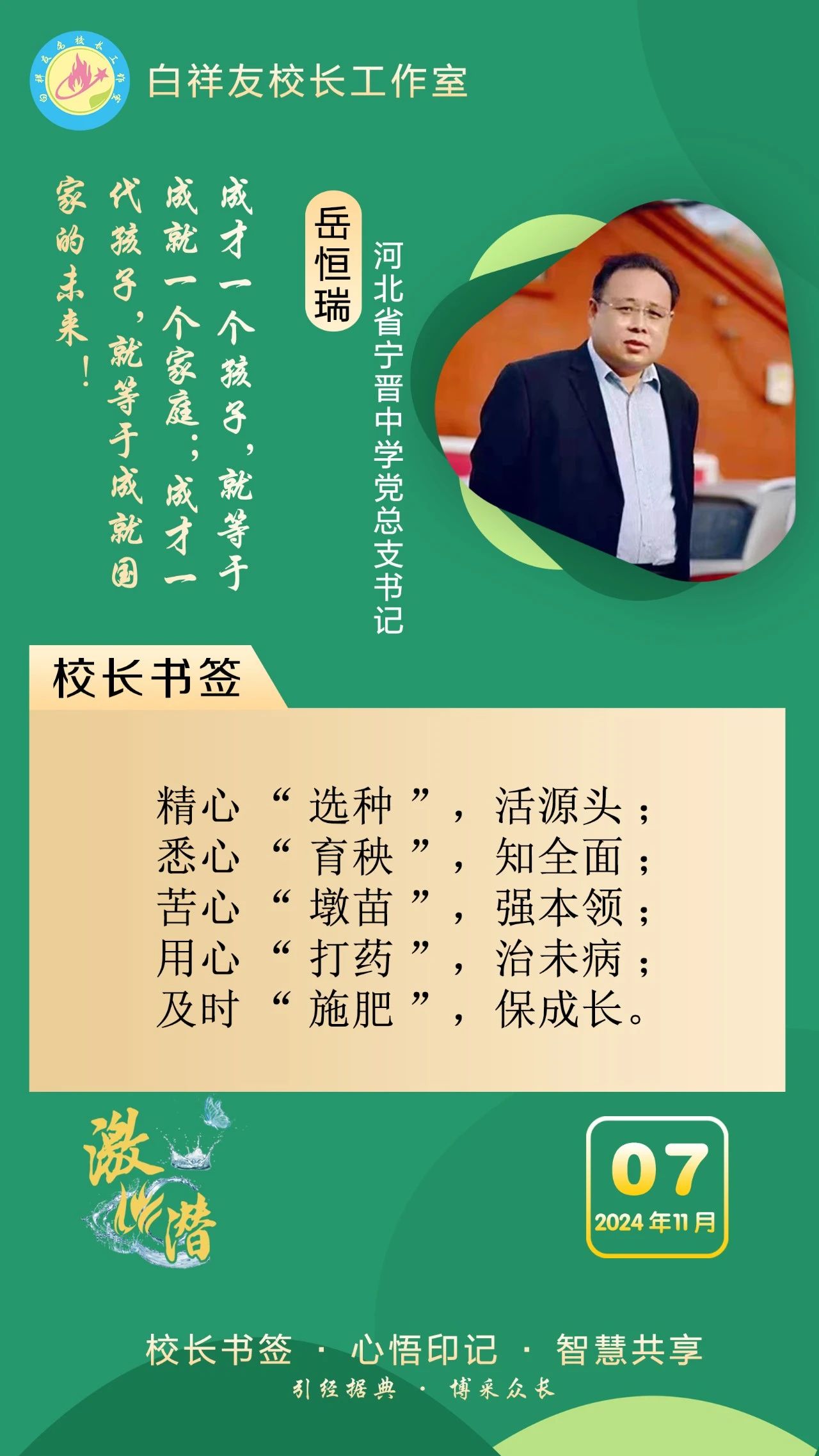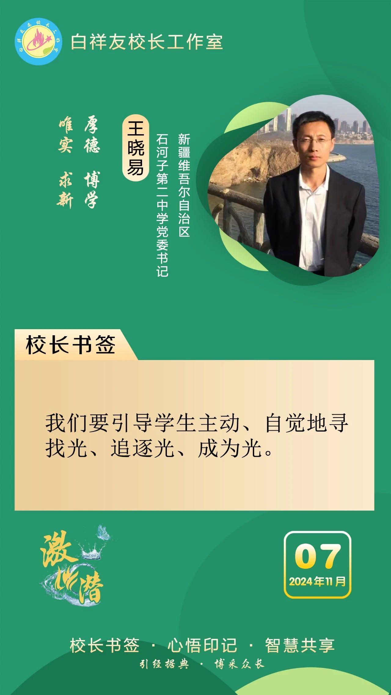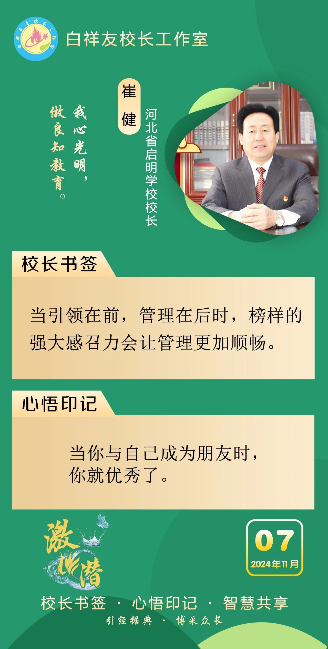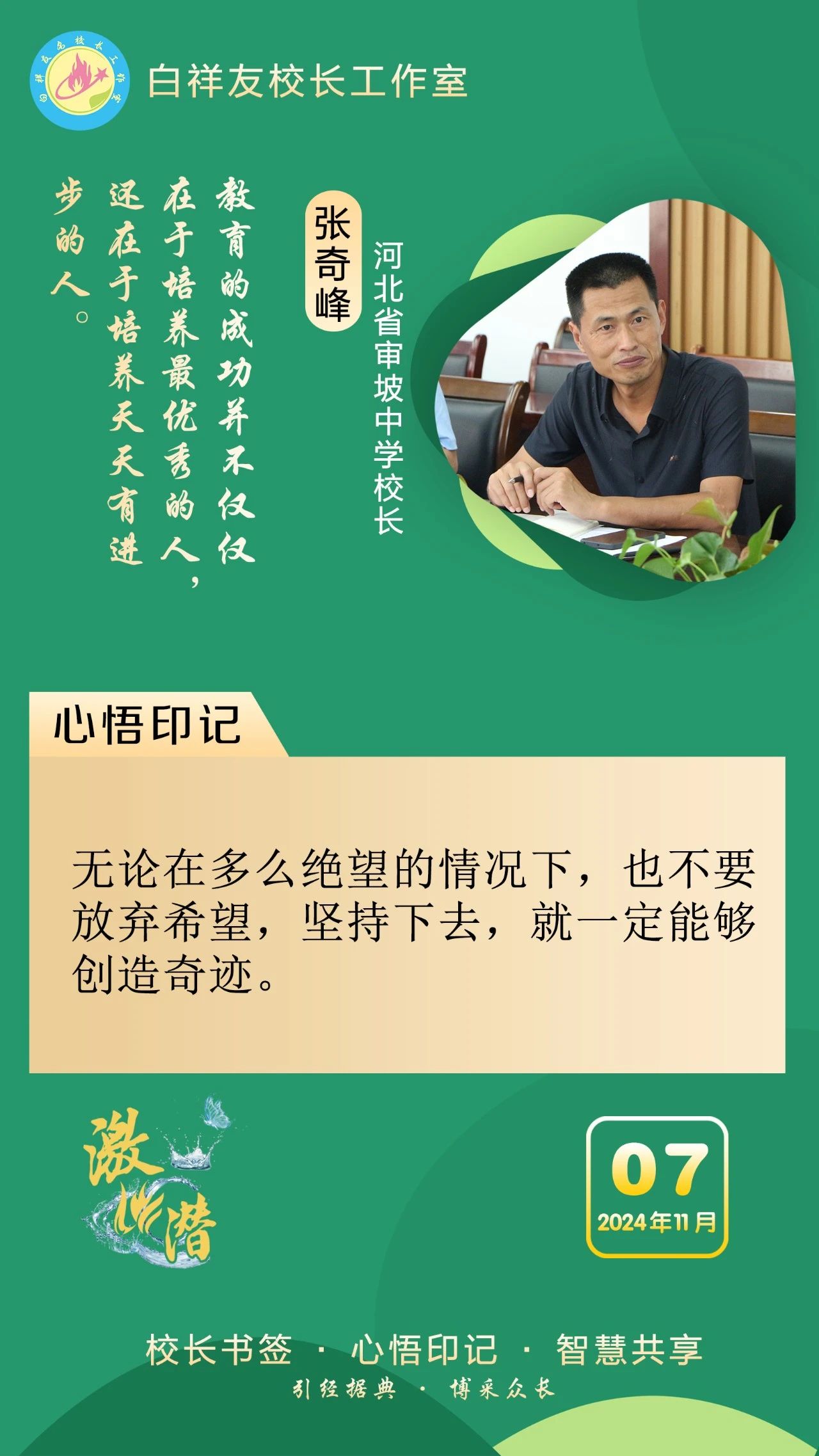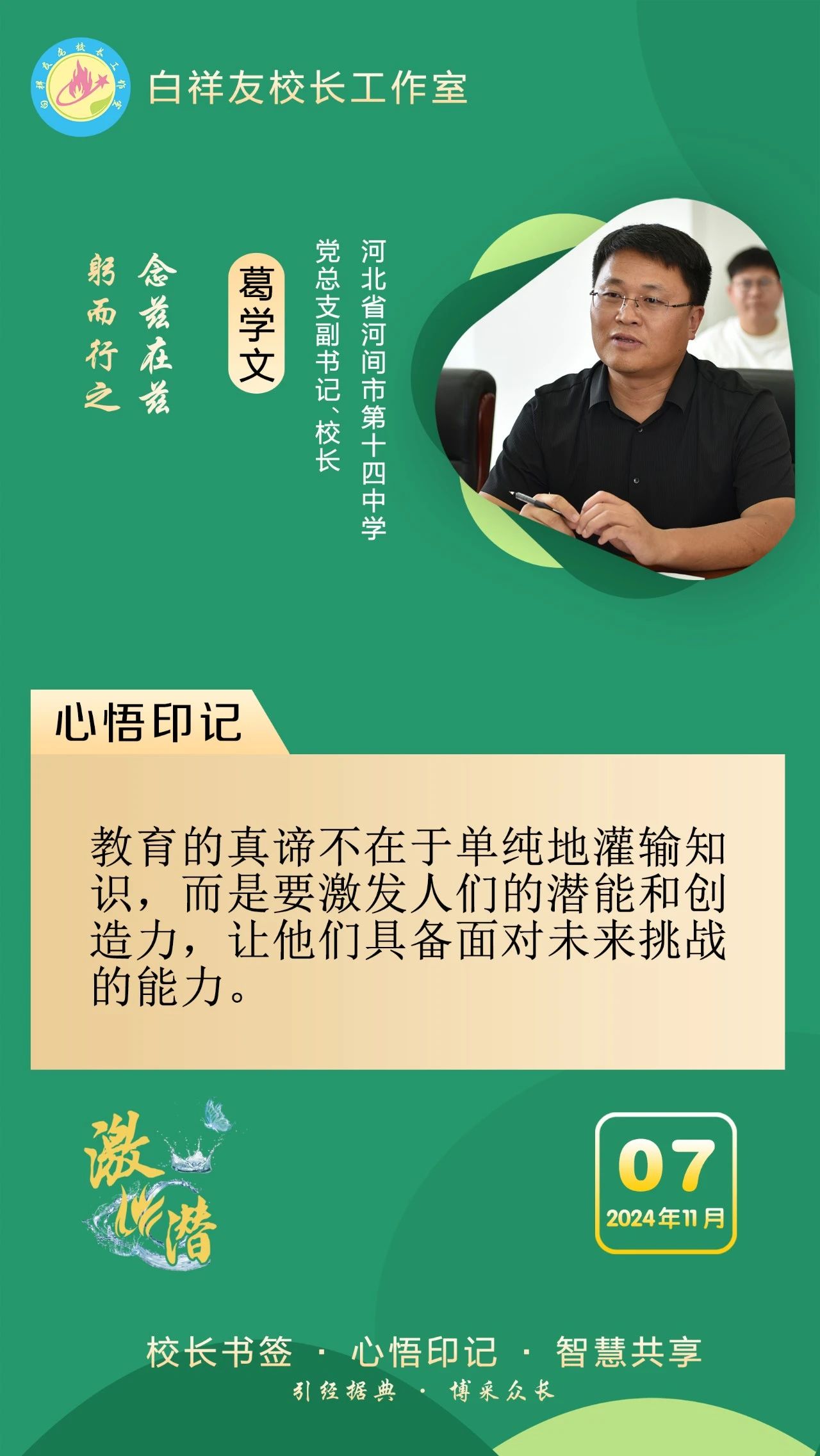 “白祥友校长工作室”成立于2019年4月,是教育部“国培计划”中小学名校长领航工程、河北省首批名校长工作室,目前省内外成员校37个。工作室坚持“资源共享、智慧共融、互助共赢”理念,已成为思想碰撞的交流场,资源共享的品牌站,成果展示的辐射源。