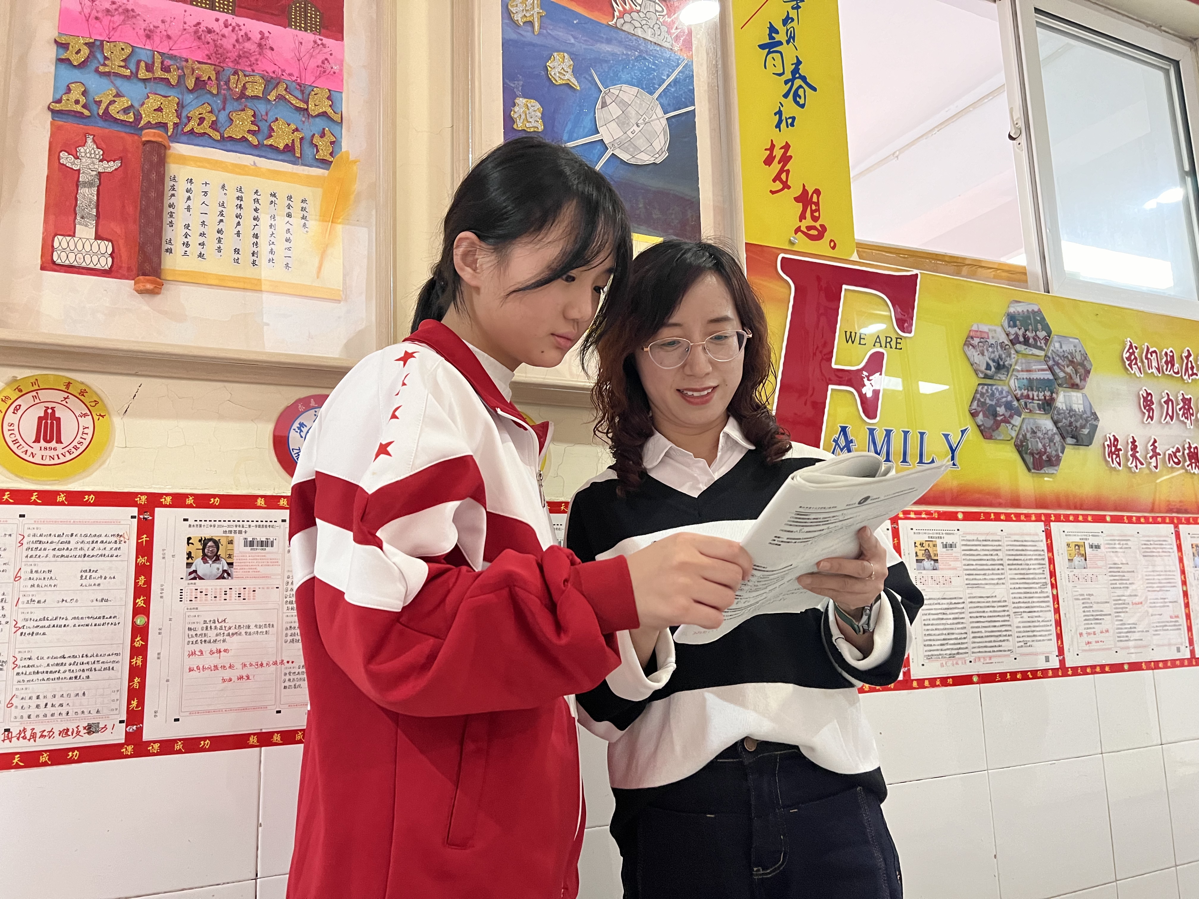 最终,她期末考试成绩冲进了班级前十名,出成绩的第二天我收到了她的一封信。有一段是这么写的:“感谢在高中遇到您,您的笑容让我感受到了母亲般的关怀,从此我不再那般想家,也更加喜欢衡水十三中这座充满温暖的校园,因为这里有您!”读完孩子的这段话,我流下了感动、欣慰与喜悦的泪水,感动于孩子的进步,也感动于自己成为孩子的情感寄托。