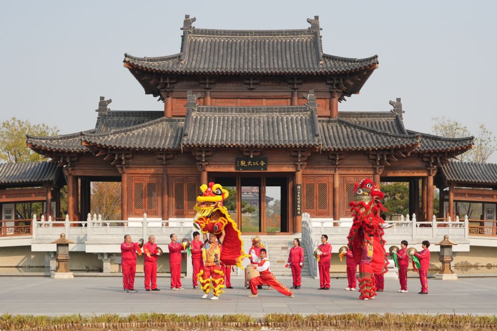 ↑11月7日,雄安新区群众在悦容公园进行非物质文化遗产项目吵子会表演。