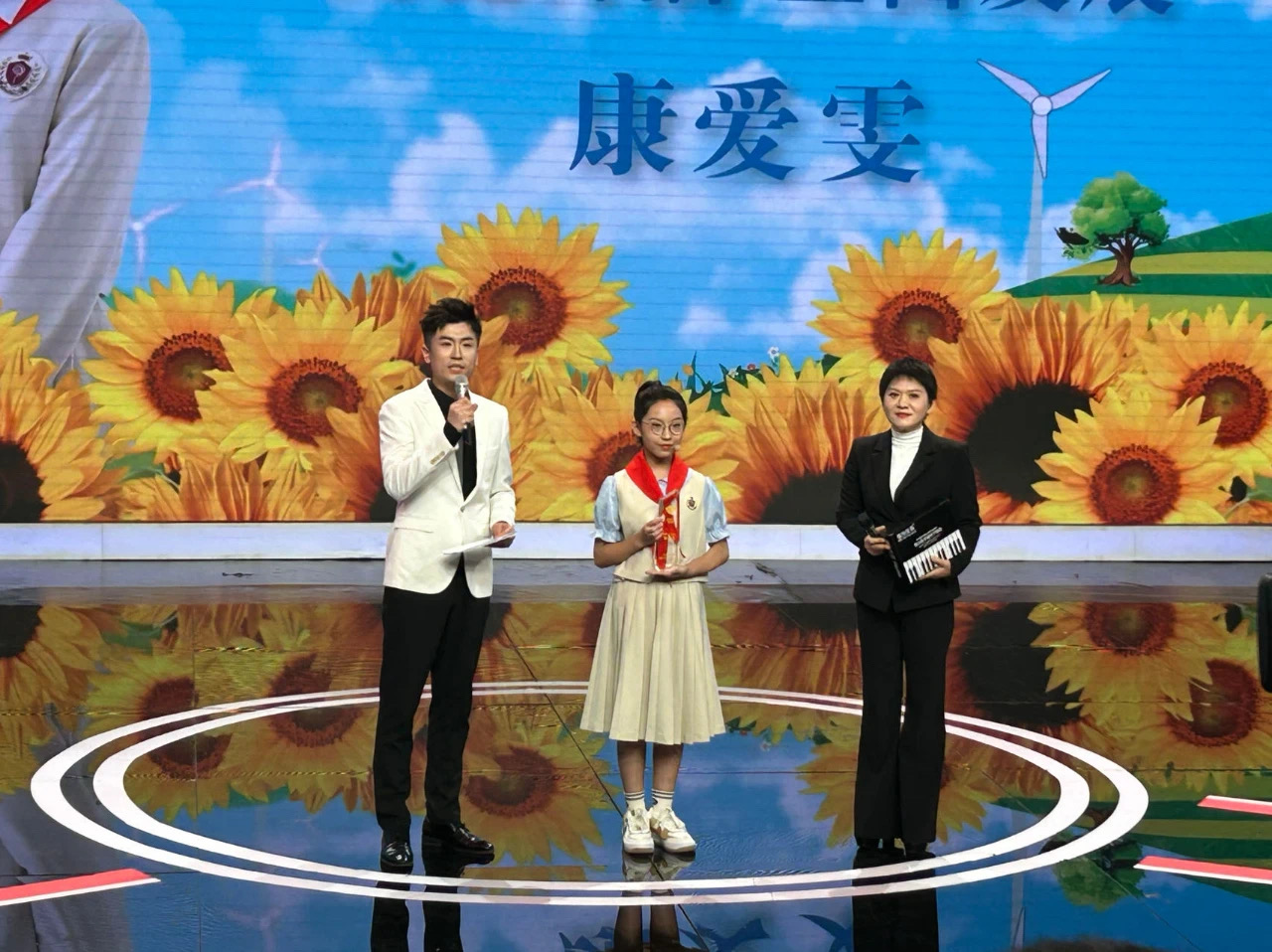 康爱雯,衡水市第三中学七年级学生。她立志向、有梦想,爱祖国、爱集体,刻苦学习、多才多艺,展现了积极向上、阳光乐观、活泼开朗的精神面貌。作为一名优秀的少先队员,她不仅担任班干部,体育委员,还是学校的校园小解说员、广播员。她热爱艺术、童心向党多次在学校升旗仪式合唱校歌时担任总指挥,积极参与“童心向党”传承红色基因等主题教育活动, 多次在校外才艺大赛和传承红色基因活动中获奖,是一名尊敬师长,品学兼优,多才多艺的新时代好少年。