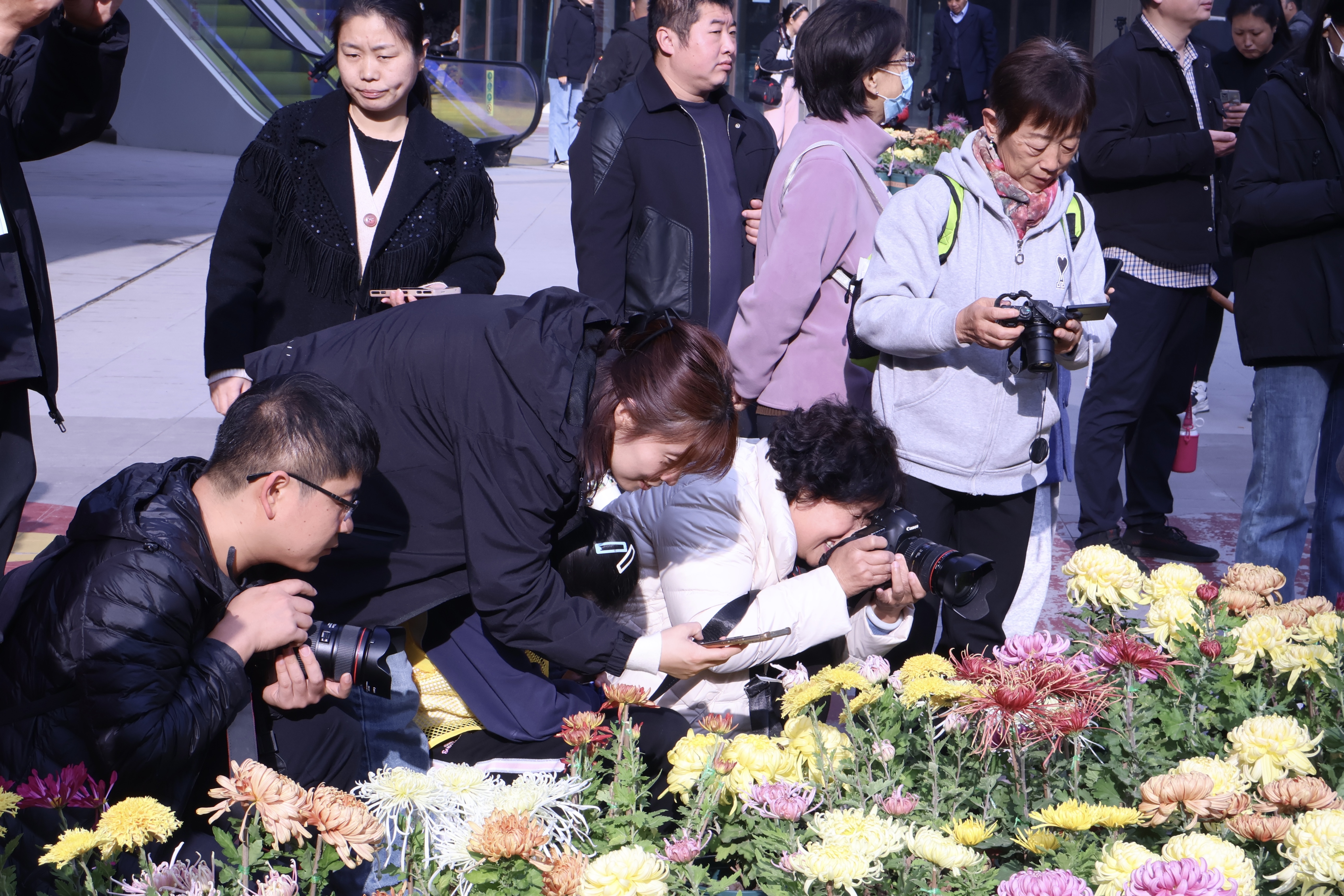 秋来谁为韶华主,总领群芳是菊花。走进玫瑰天街,各色菊花争奇斗艳、竞相开放,墨王、金绣球、金背大红、赤凤旋尾等各类品种的菊花让人目不暇接,仿佛置身于菊花的世界里。摄影爱好者纷纷拿起了手中的相机,将这美好的瞬间定格为永恒。