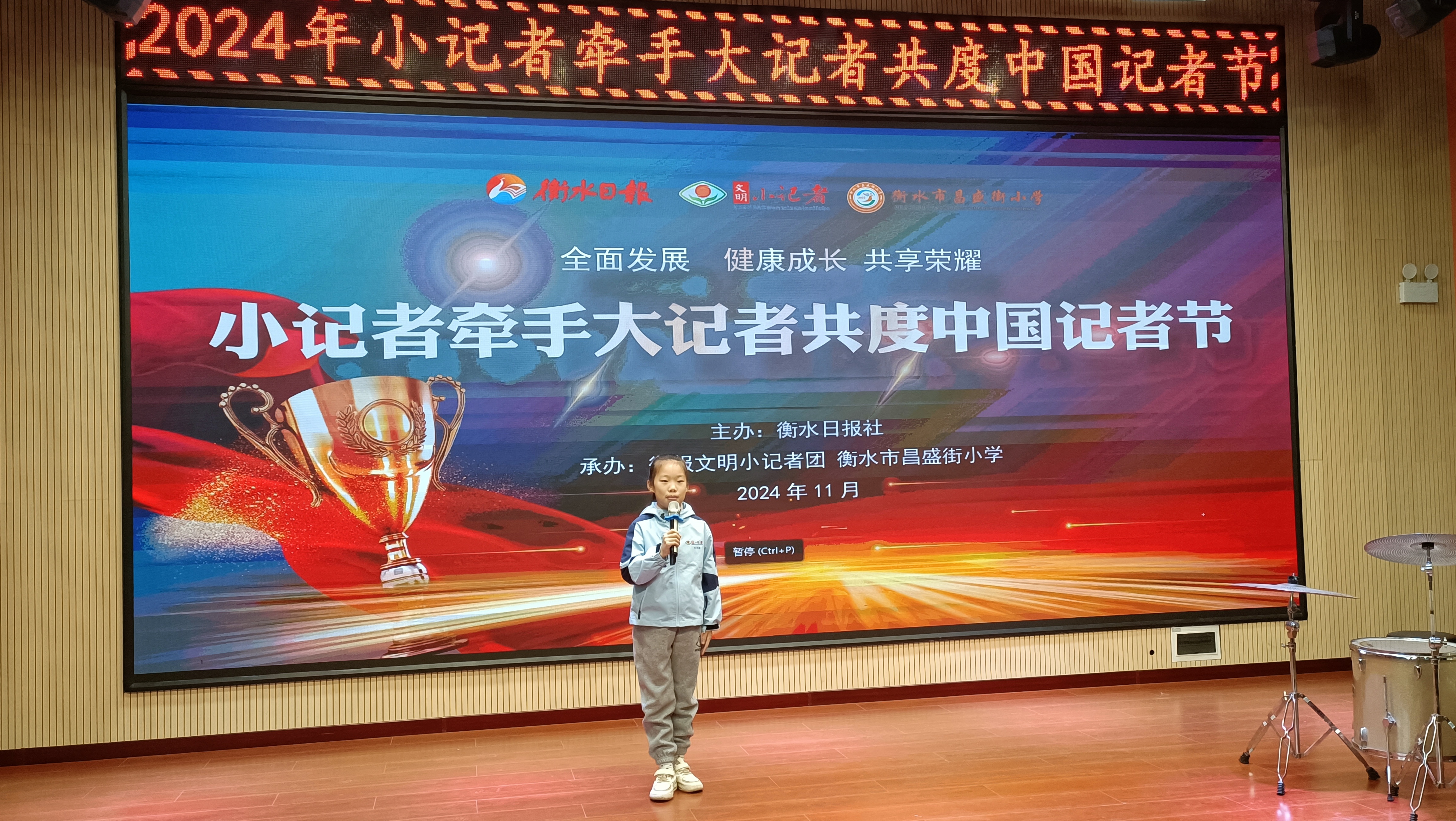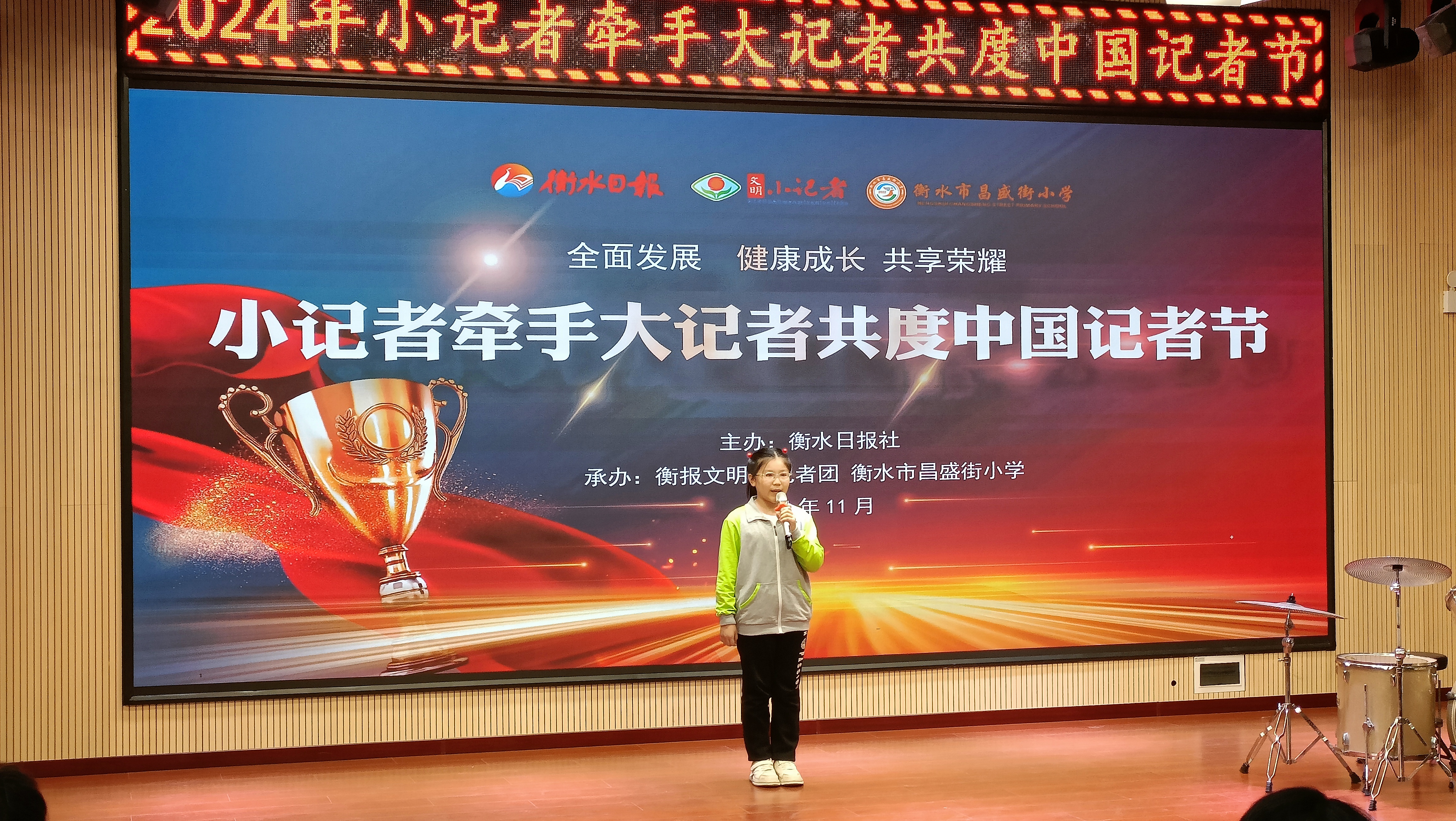 11月9日,由衡水日报社主办,衡报文明小记者团和衡水市昌盛街小学承办的小记者牵手大记者共度中国记者节活动在昌盛街小学多功能厅举办。大记者和小记者们表演节目、做游戏,一起庆祝中国记者节。