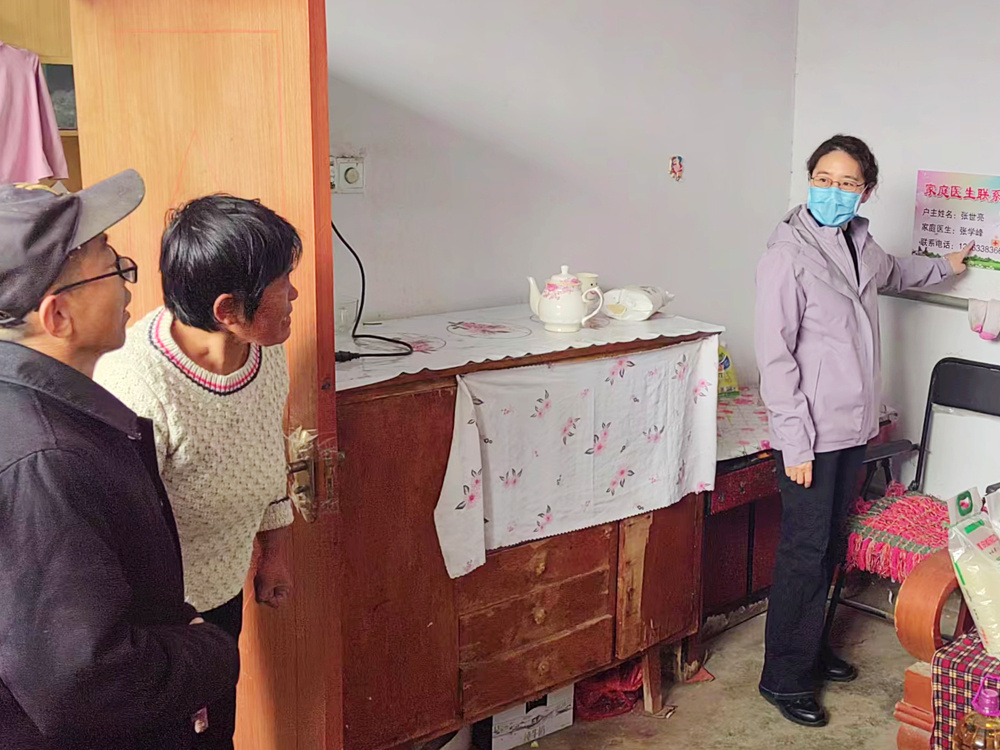 走访询问村民家庭医生落实情况。张倩倩 摄