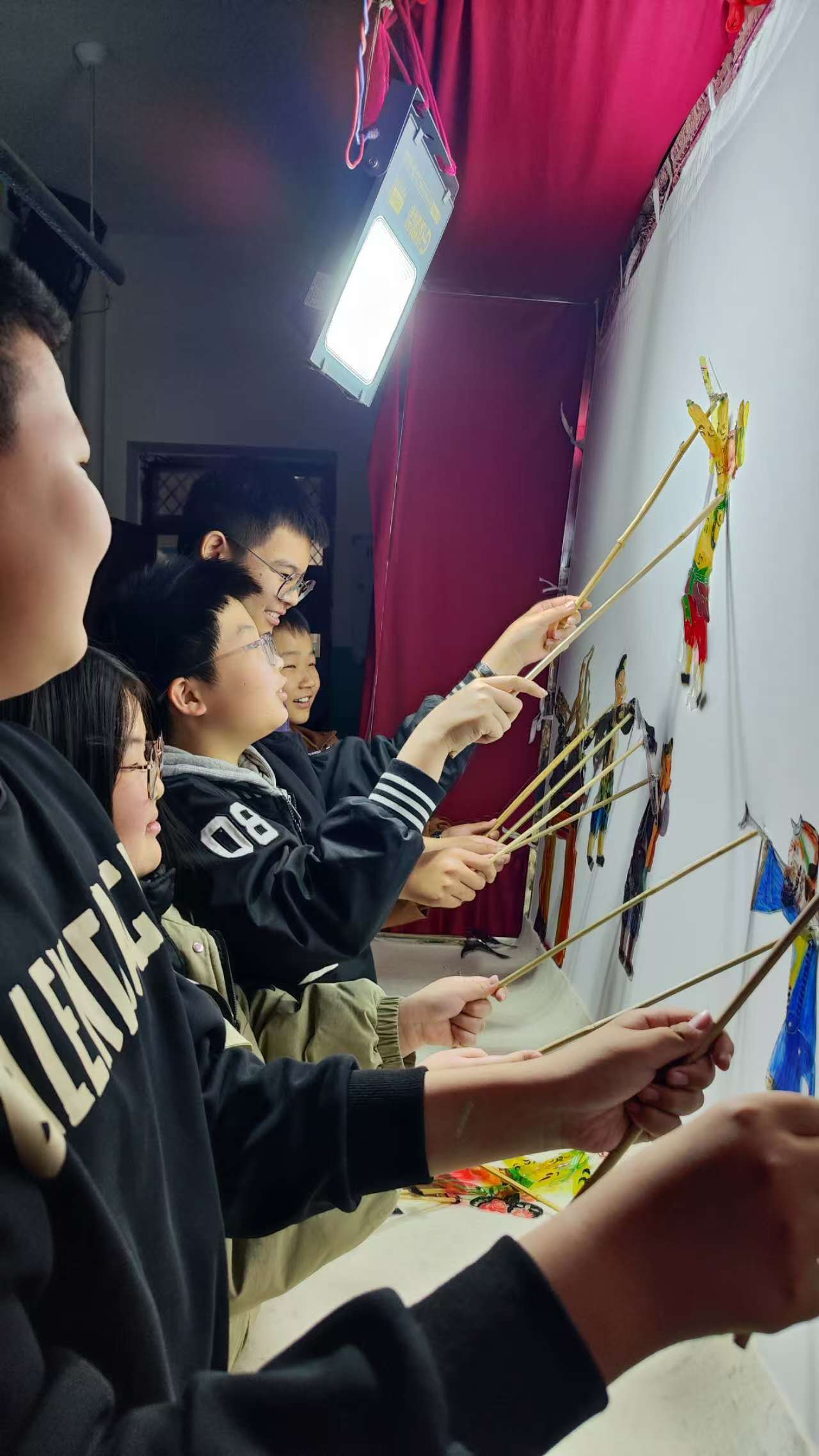 伴随着音乐声响起,皮影戏传承人站在幕布后,用灵巧的双手操纵着竹棒。看着皮影人物上下舞动、左右跳跃,同学们仿若身处其中,感受着故事情节的跌宕起伏和故事人物的喜怒哀乐。传承人还向同学们讲授了皮影戏的起源和演变,表演了《小羊过桥》《猪八戒背媳妇》《东郭先生与狼》等经典皮影戏剧目,并阐释了传承非物质文化遗产的深刻含义,让孩子们在愉悦的氛围中,感受传统文化的独特魅力。