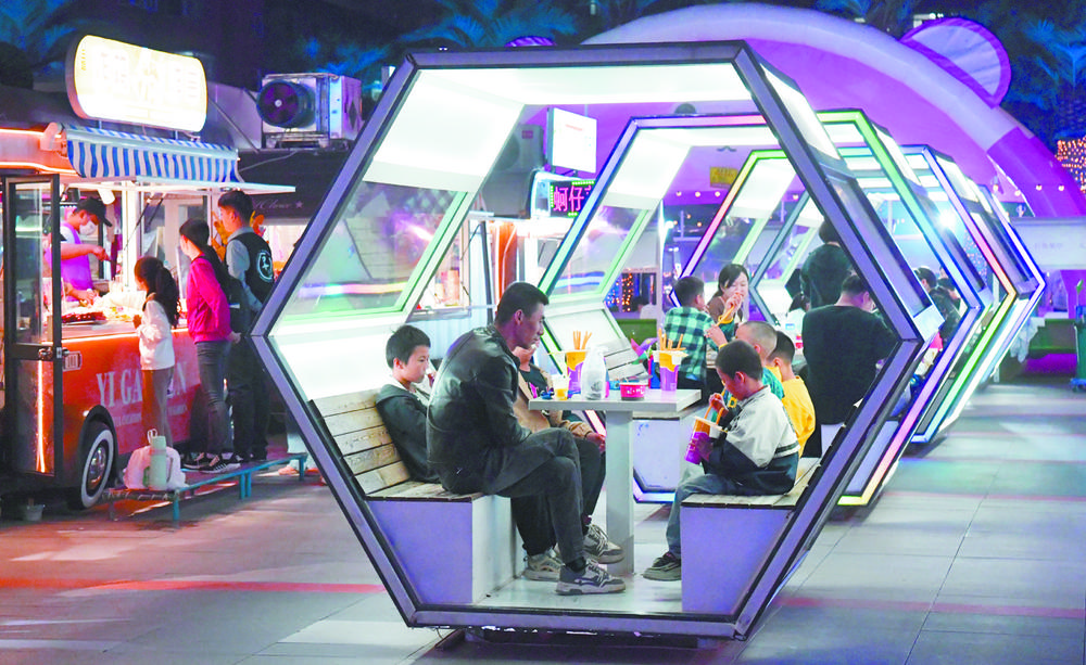 市民在石美集城市微度假中心品尝特色美食。