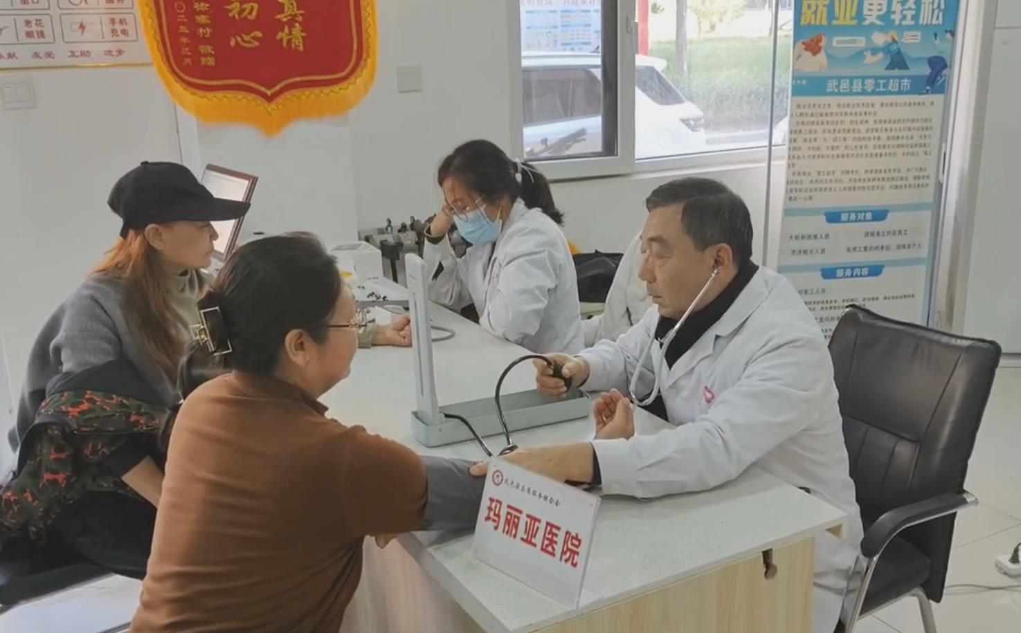在文昌社区便民服务中心,来自武邑玛丽亚医院的医生、护士,为社区居民提供专家咨询、健康咨询、居家指导等一系列免费服务。居民刘凤梧有着20多年的心血管病史,他在现场咨询了相关专家并得到了专业的用药指导。“医生把这些药名和怎么用药全部写在纸上,真是太感谢了。”他的话语中透出的是赞许和肯定。