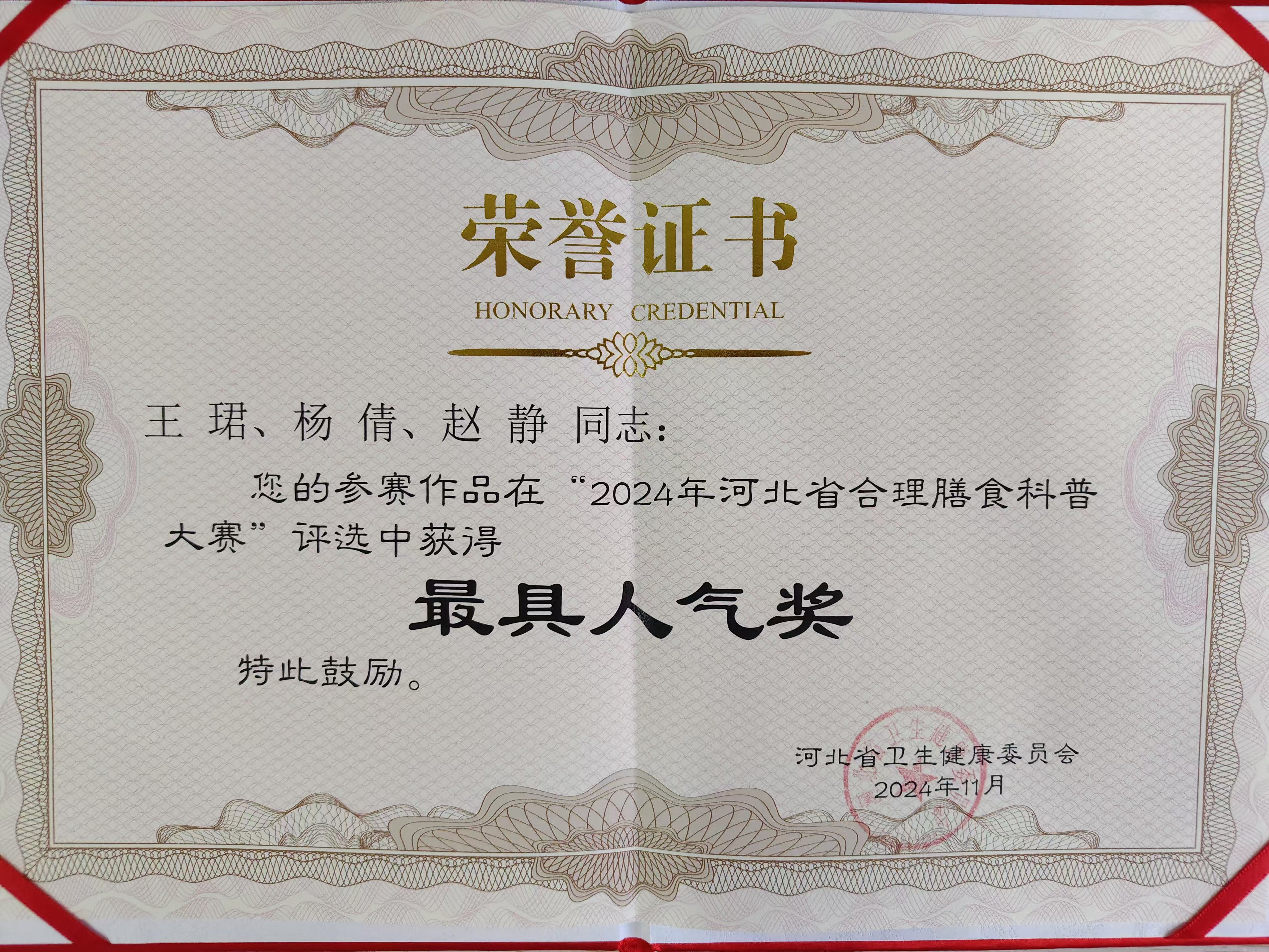 围绕全省卫生健康中心工作,以群众营养健康需求为导向,以医护人员和营养指导员讲科普为抓手,11月10日,由河北省卫生健康委员会主办,河北省营养师服务协会、河北省广播电视台协办的“河北省合理膳食科普大赛”在石家庄举行,衡水五院三名选手凭借出色的表现,获得两个奖项!