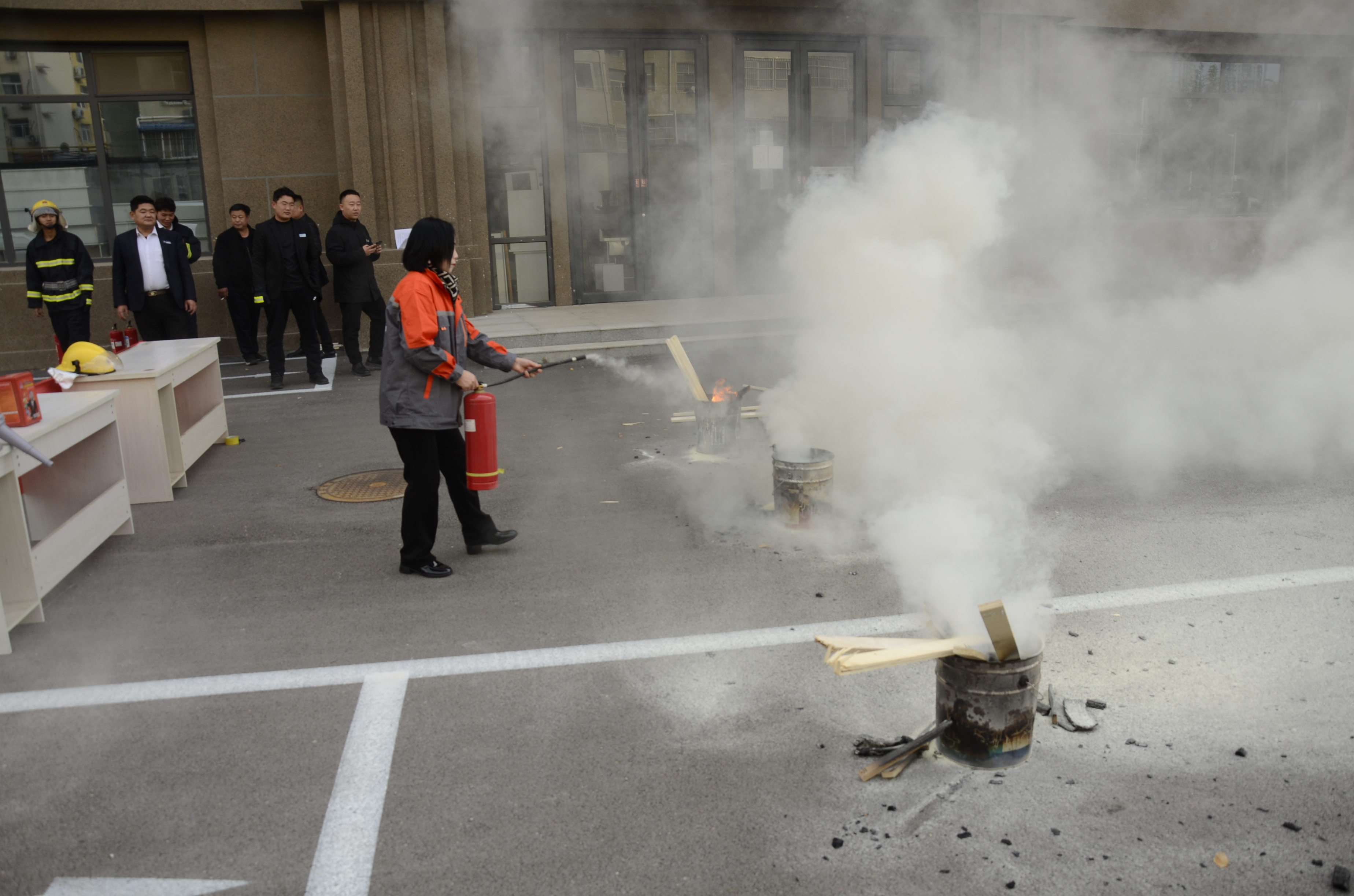 区域经理现场指导大家对模拟起火点进行实战灭火,有序展开练习,在上风向、距离起火点保持一定距离后操作灭火器进行灭火,在实践中扎实掌握消防技能,进一步增强了安全防范意识。