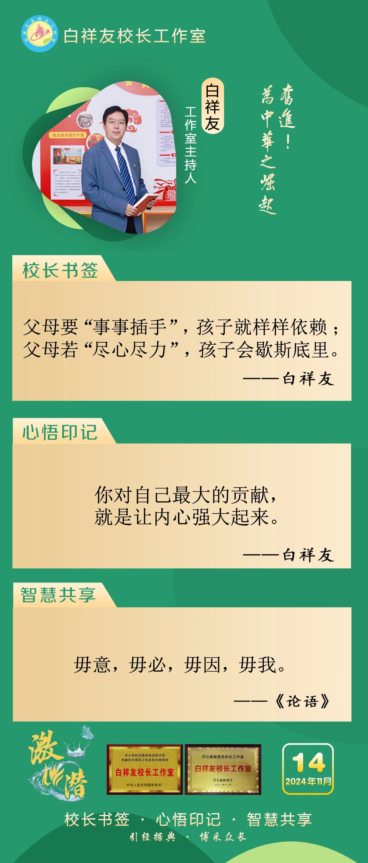 “白祥友校长工作室”成立于2019年4月,是教育部“国培计划”中小学名校长领航工程、河北省首批名校长工作室,目前省内外成员校48个。工作室坚持“资源共享、智慧共融、互助共赢”理念,已成为思想碰撞的交流场,资源共享的品牌站,成果展示的辐射源。