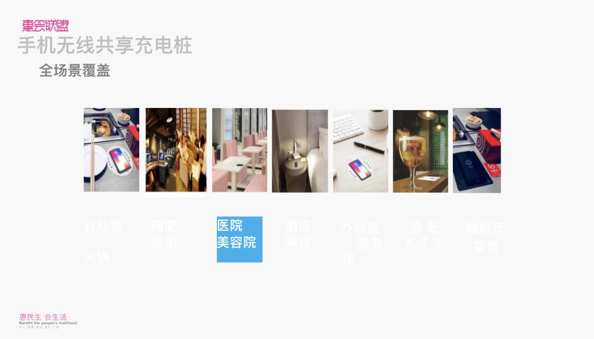 “表面看起来手机共享隔空充电项目和我们的惠会联盟平台没有什么联系,但它其实是推广平台APP的一个工具。”郑彬彬介绍,贸然进店推广APP商家一般都很抵触,但是在为其免费安装手机无线充电桩的前提下,商家会更易于接受APP应用平台,“我们免费为商户安装无线充电桩,商家享受充电收益分成及后期广告投放收益分成,相当于坐着就赚钱;另外顾客吃饭可享限时免费充电,又为商家吸引了客源。以此作为下载APP的条件,一般商家都不会拒绝”。