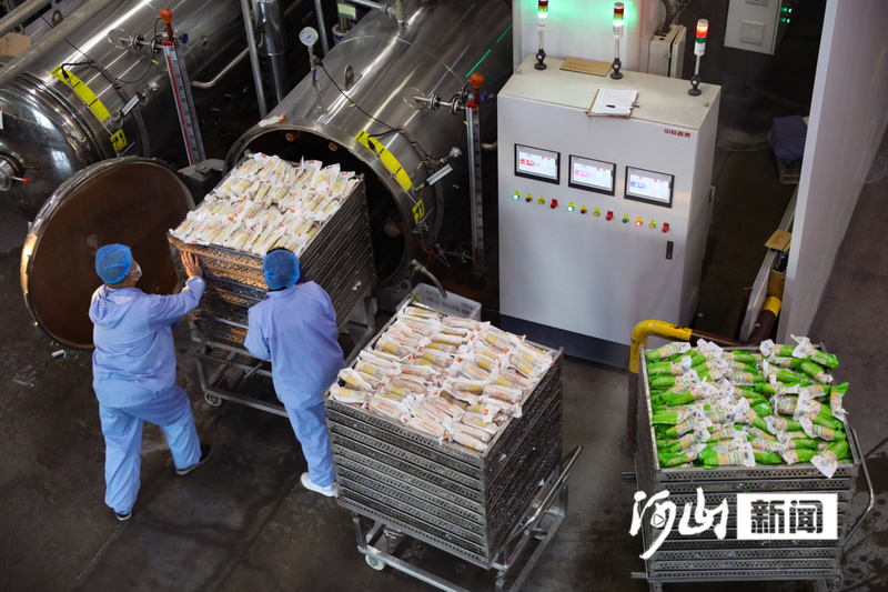 智能化标准生产线上,又是另一番场景。在常温玉米灭菌车间,分拣削切的玉米经锁鲜技术处理后,被推入蒸煮罐内进行杀菌,经过一小时高温蒸煮,从粒到芯实现真正的灭菌。眼下虽不是玉米收获期,包装车间里却忙碌非常,十几名工人将真空包装的甜糯玉米,熟练分类、平台划分、打包装箱、贴单分拣……