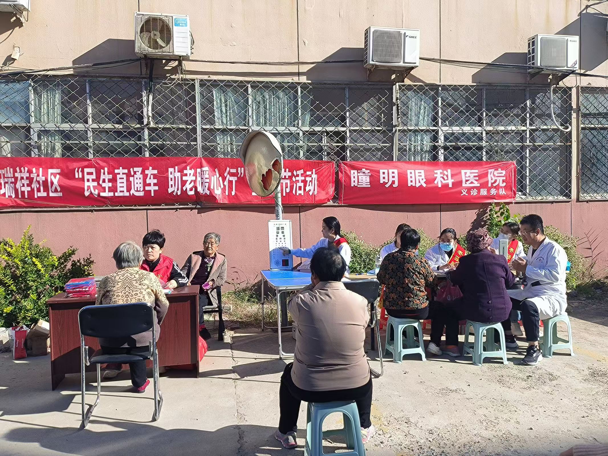 聚焦居民健康,化身“监护员”。瞳明眼科医院党支部联合瑞祥社区党支部联合开展“民生直通车、助老暖心行”活动,活动现场志愿者们讲解了生活中如何注意眼睛健康,并为有需要的居民指导下一步的诊疗方向,提高了“早预防、早发现、早治疗”的健康意识,赢得广大居民群众的一致好评。