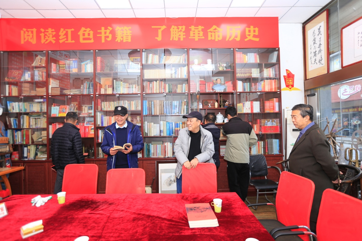 11月20日下午,电影《怒放的花朵》剧组一行,在中共衡水市委原副秘书长、编剧杨新诚的带领下深入衡水市首家红色文化书屋实地踩点勘景,为电影开拍做好充分的准备。衡水市红色文化传承研究会会长刘义沛、党支部书记扈文立、秘书长李敬忠、会员张健陪同。