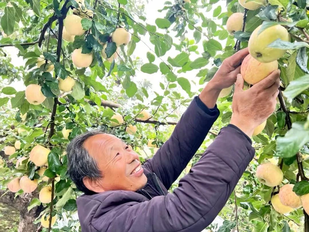 “我们村集体也经营着一个果园,每年到了霜降、立冬的时候,不少游客都会来我们村采摘苹果,收入比较稳定。苹果存放得当的话,可以储存到来年三月份左右。”八家庄村党支部书记兼村委会主任解中林说。