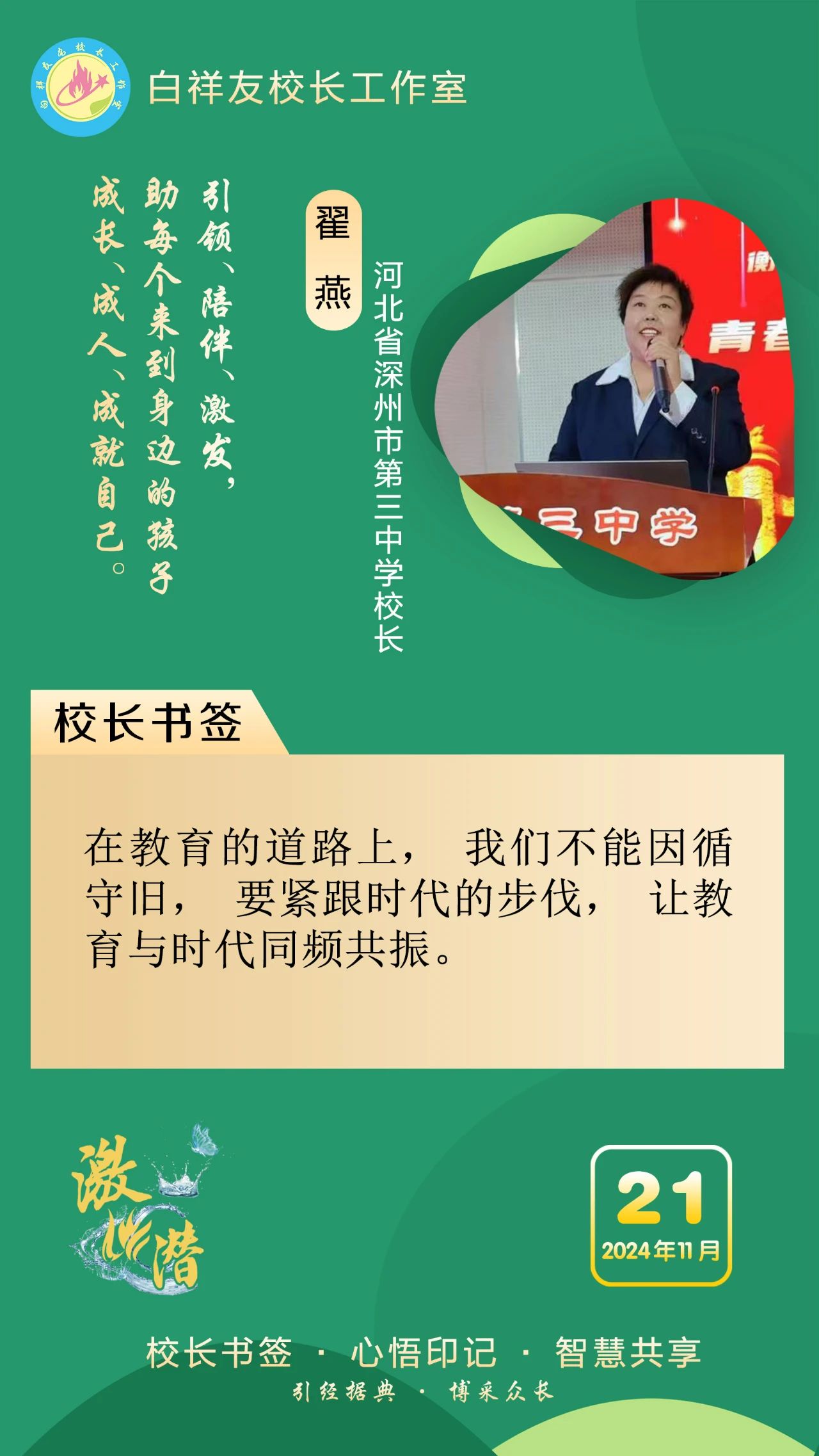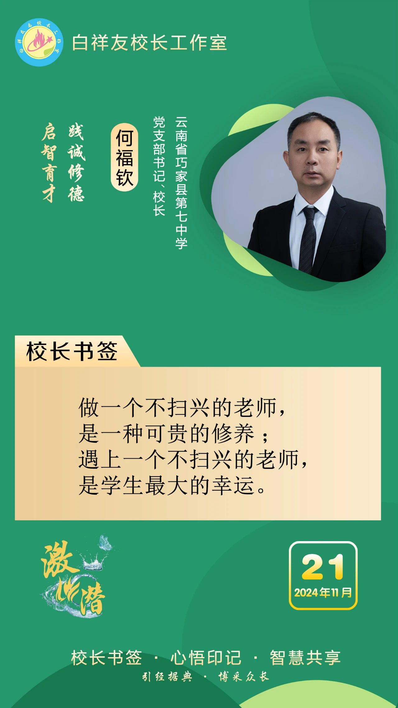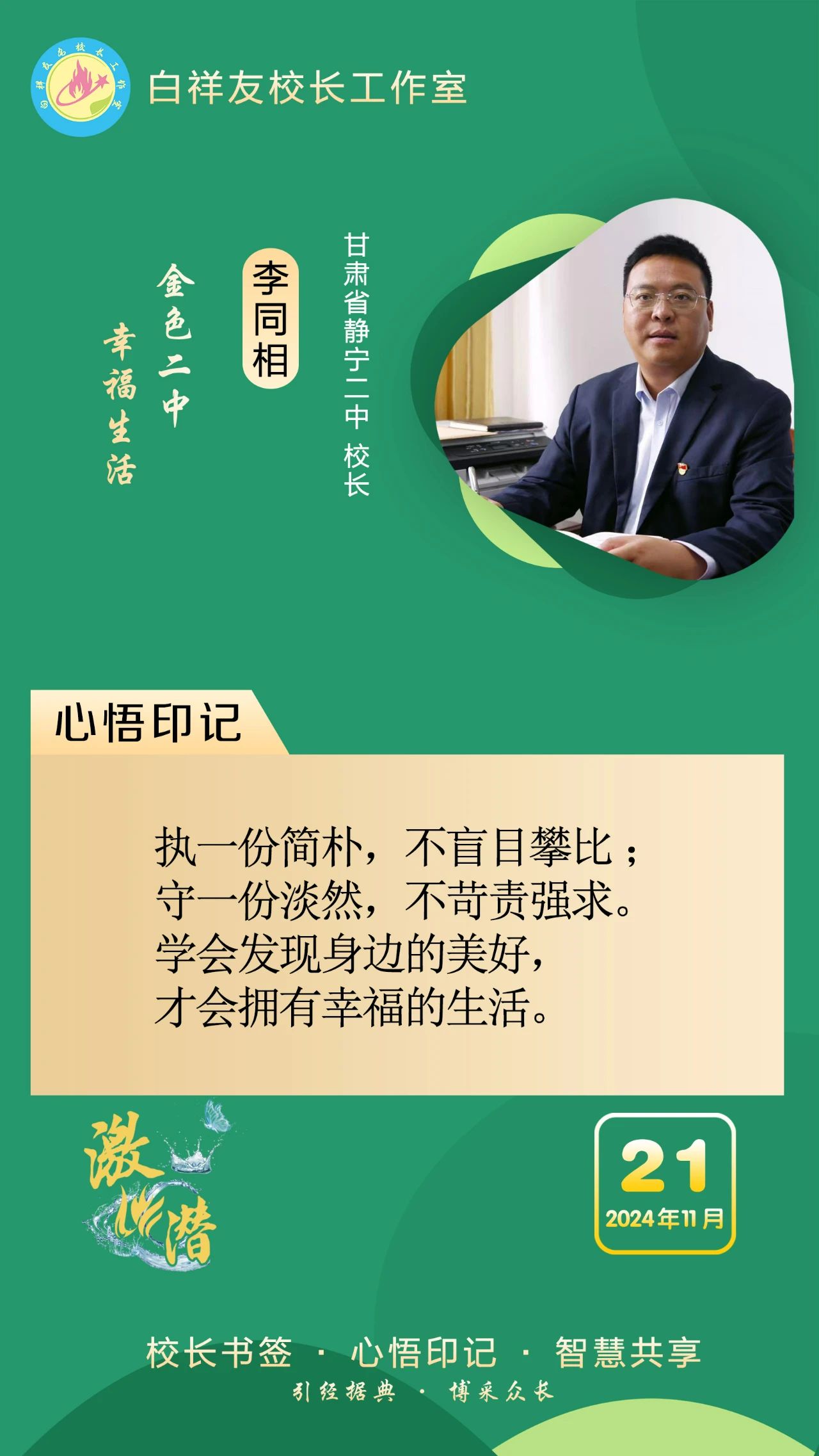 “白祥友校长工作室”成立于2019年4月,是教育部“国培计划”中小学名校长领航工程、河北省首批名校长工作室,目前省内外成员校48个。工作室坚持“资源共享、智慧共融、互助共赢”理念,已成为思想碰撞的交流场,资源共享的品牌站,成果展示的辐射源。