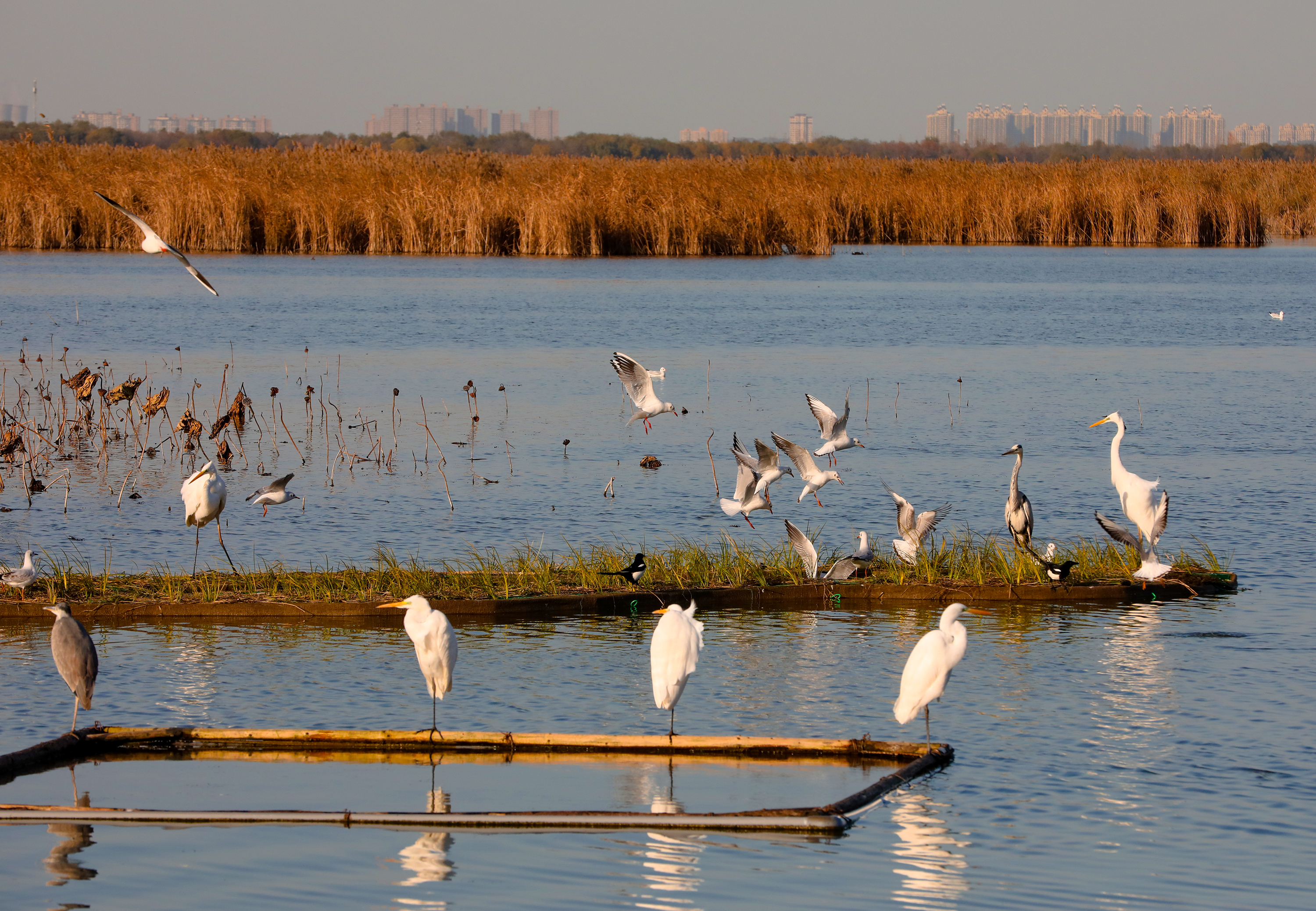 作为华北平原唯一保持沼泽、水域、滩涂、草甸和森林完整湿地生态系统的自然保护区,衡水湖一直是东亚——澳大利西亚候鸟迁徙路线上的重要中转站。近期的监测数据显示,除了大雁之外,红嘴鸥、花脸鸭、白琵鹭等多种候鸟也已相继抵达衡水湖。它们在此栖息觅食,为接下来的长途飞行积蓄力量。