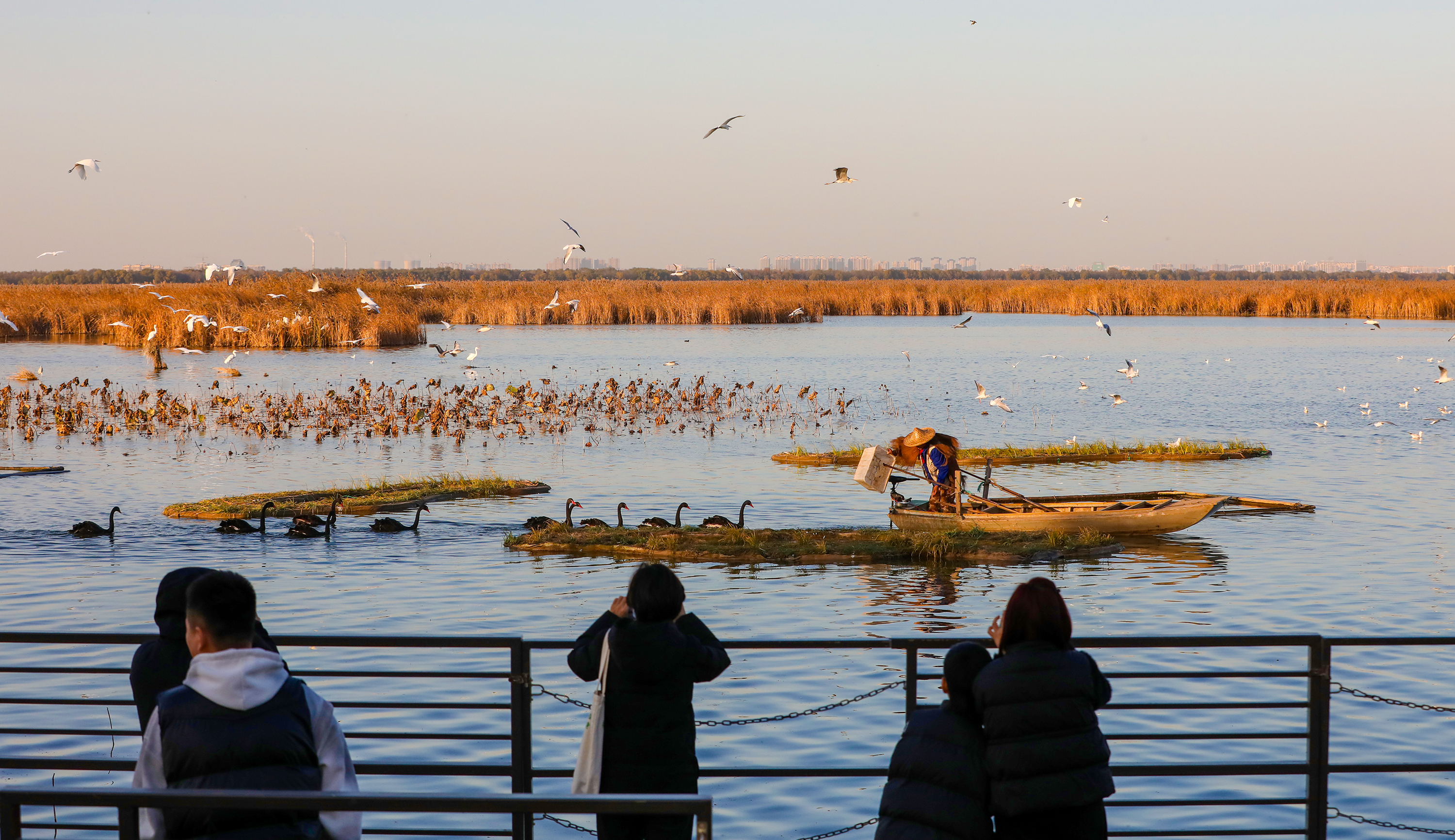 近年来,随着环境保护力度的持续加大和衡水湖生态环境的显著改善,这片水域已经成为众多鸟类的栖息天堂。据不完全统计,每年11月中旬,都会有大批豆雁、鸿雁、红嘴鸥等60余种越冬候鸟选择来这里停歇、觅食。衡水湖上空也因此形成了飞鸟连天、变幻莫测的“鸟浪”奇观,吸引了大量游客前来观赏并拍照留念。