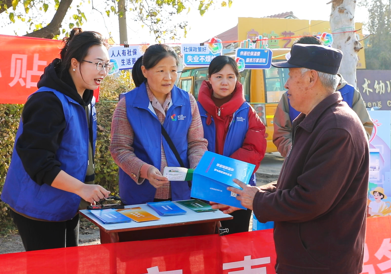 活动期间,桃城区人社局在赵圈镇大集上设立多个政策咨询宣传专区,养老保险、失业保险、工伤保险、社保卡等各类政策咨询一目了然。工作人员通过面对面讲解、发放资料、现场演示认证流程等方式,向群众详细解读社保政策及便民服务举措,包括“退休一件事”办理、工伤认定、“一门式”线下服务与“一网通办”线上模式等内容进行了全方位、多角度的深度解读,让每一位赶集的百姓都能深入理解社保政策内涵。