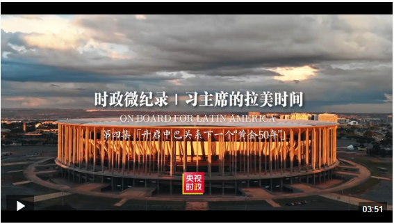 访问期间,两国元首宣布,将中巴关系定位提升为携手构建更公正世界和更可持续星球的中巴命运共同体,同时将共建“一带一路”倡议同巴西发展战略对接。走过50年,中巴关系处于历史最好时期;站在新的起点,东西半球这对“黄金搭档”将命运与共、相互成就,携手建设更加美好的世界。