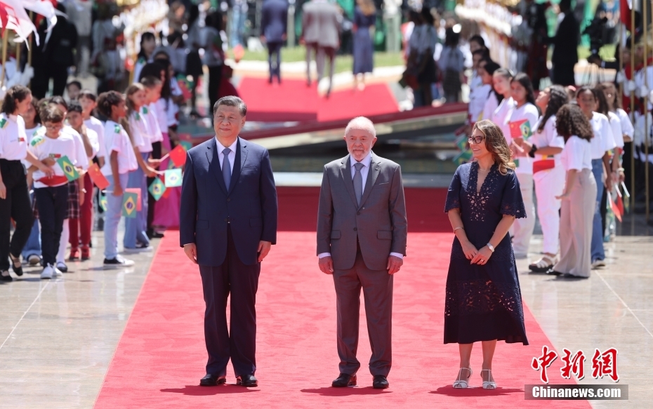 当地时间11月20日,中国国家主席习近平同巴西总统卢拉举行会谈。图为会谈前,巴西总统卢拉在首都巴西利亚为习近平举行隆重欢迎仪式。中新社记者 盛佳鹏 摄