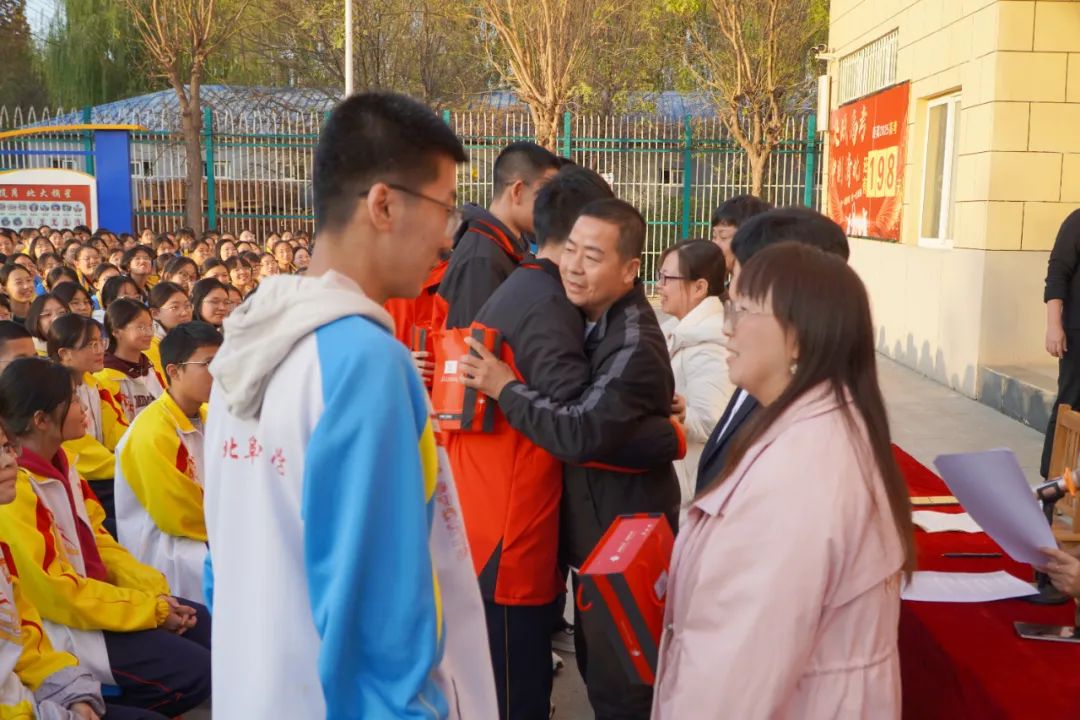 大会宣读了期中考试优胜者名单,曾与他们并肩奋斗的初中老师们为优胜同学颁发了奖状和奖品。