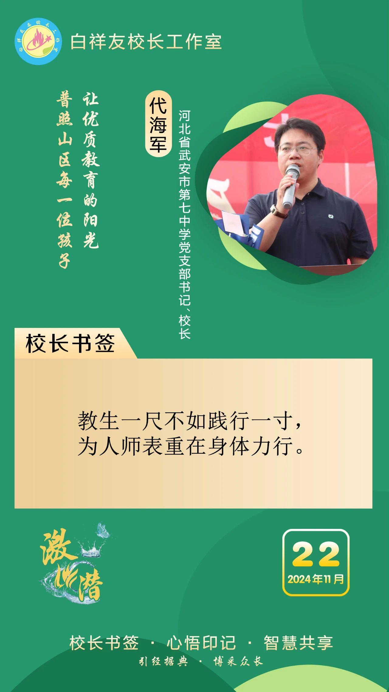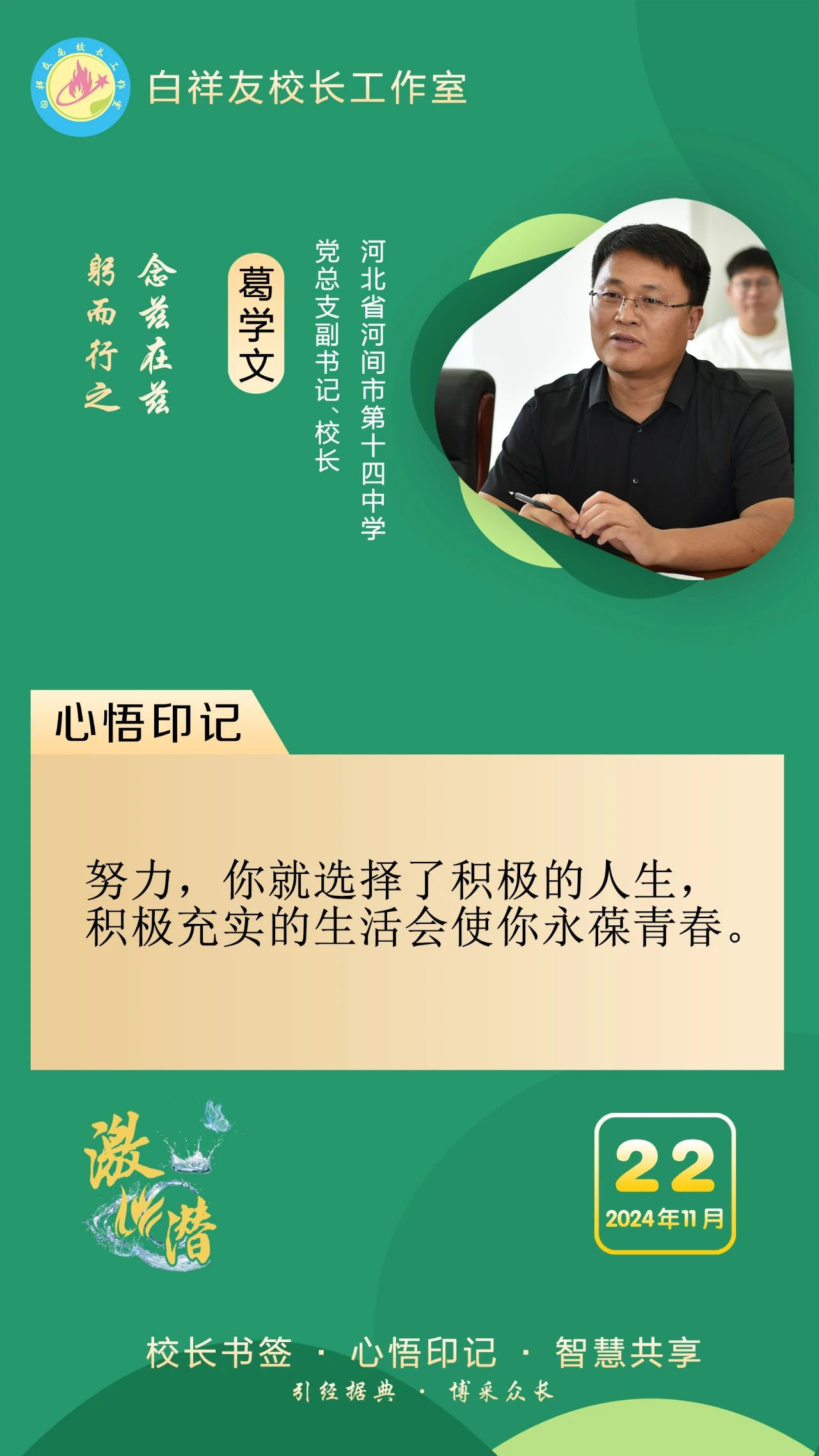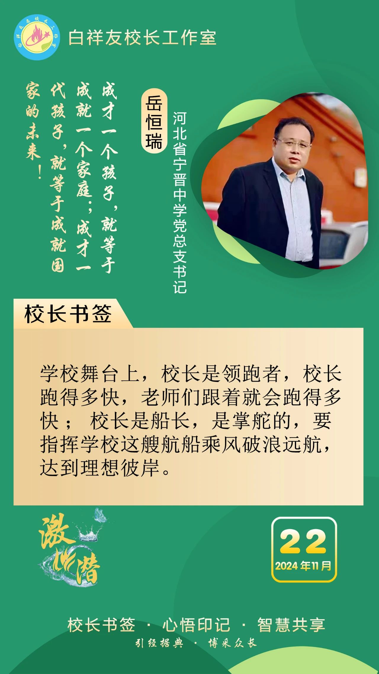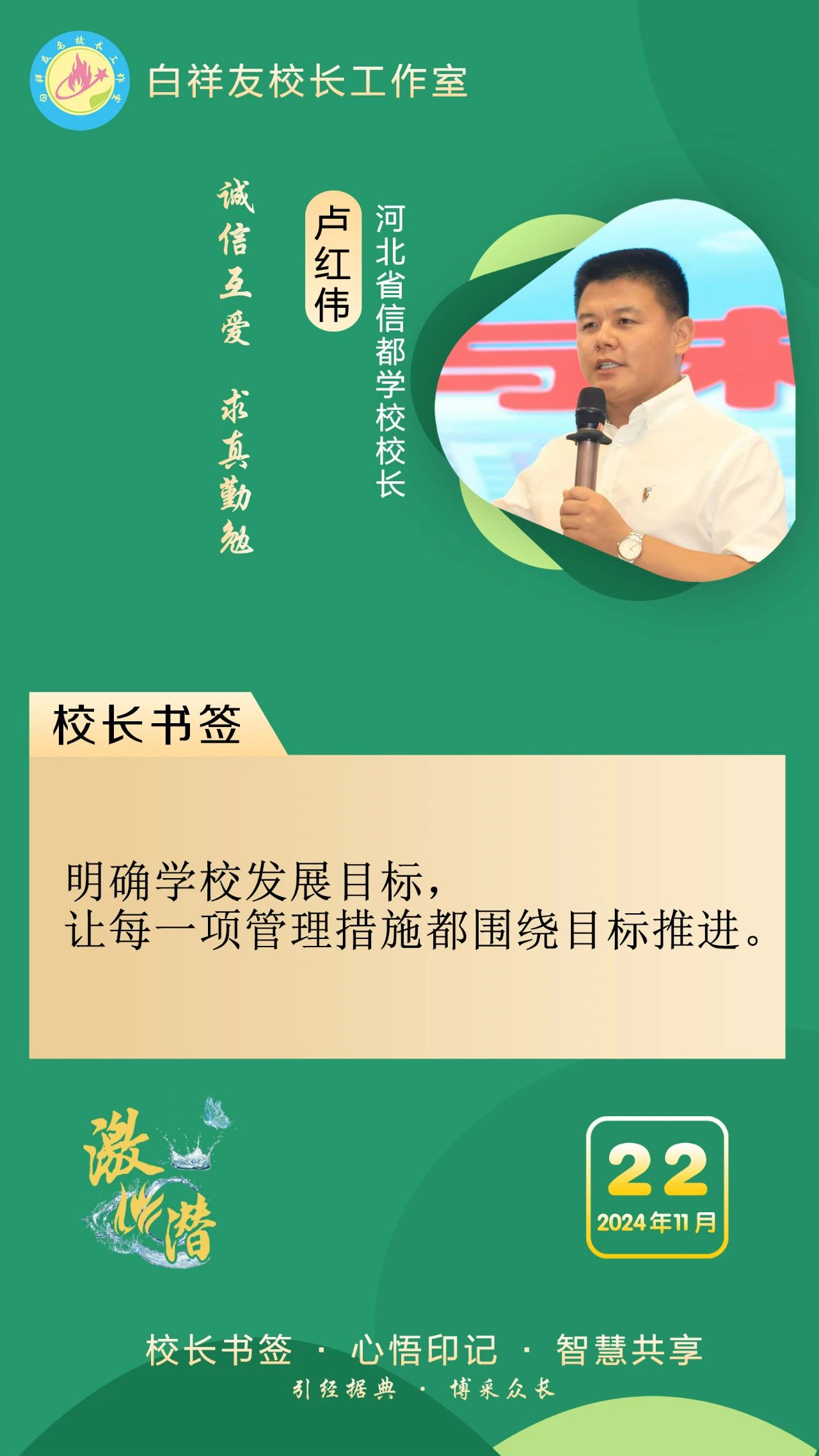 “白祥友校长工作室”成立于2019年4月,是教育部“国培计划”中小学名校长领航工程、河北省首批名校长工作室,目前省内外成员校48个。工作室坚持“资源共享、智慧共融、互助共赢”理念,已成为思想碰撞的交流场,资源共享的品牌站,成果展示的辐射源。