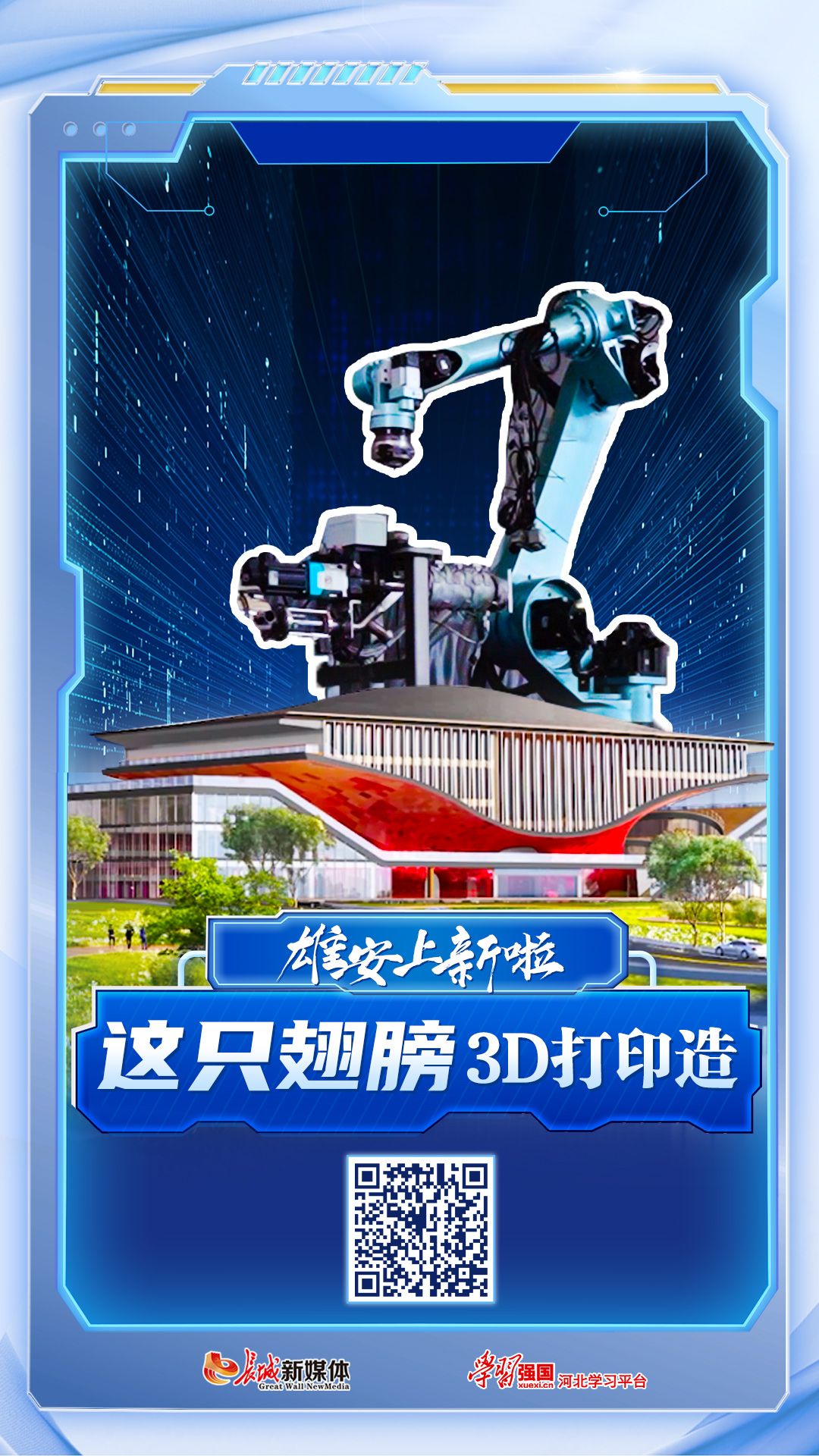 位于雄安新区容东片区的电建智汇城“雄安之翼”艺术馆就正在被3D打印出来。