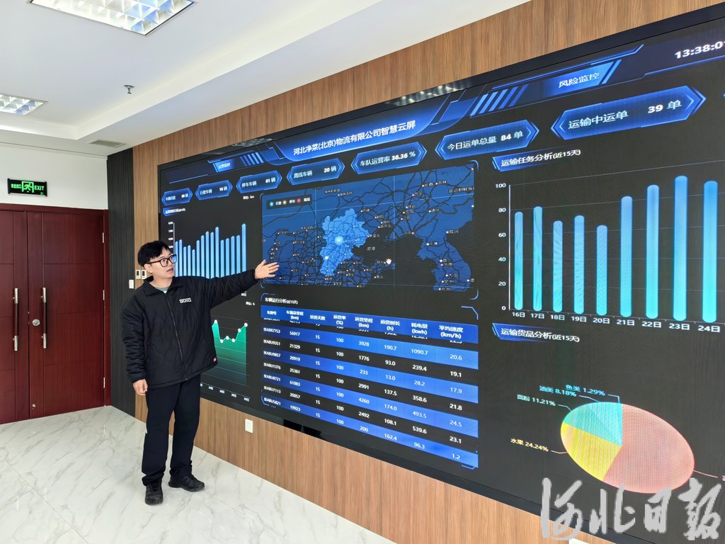 设计车辆行驶路线、安排专人统计货物发送需求、通过净菜物流数智应用平台精确监控和调度车辆……位于北京市房山区的河北净菜(北京)物流有限公司内,数字运营部总经理张振中的工作安排得满满当当。