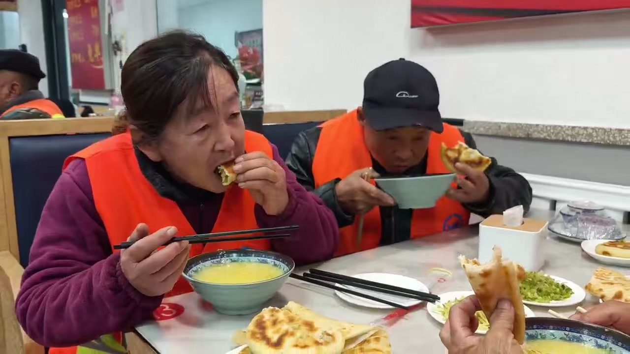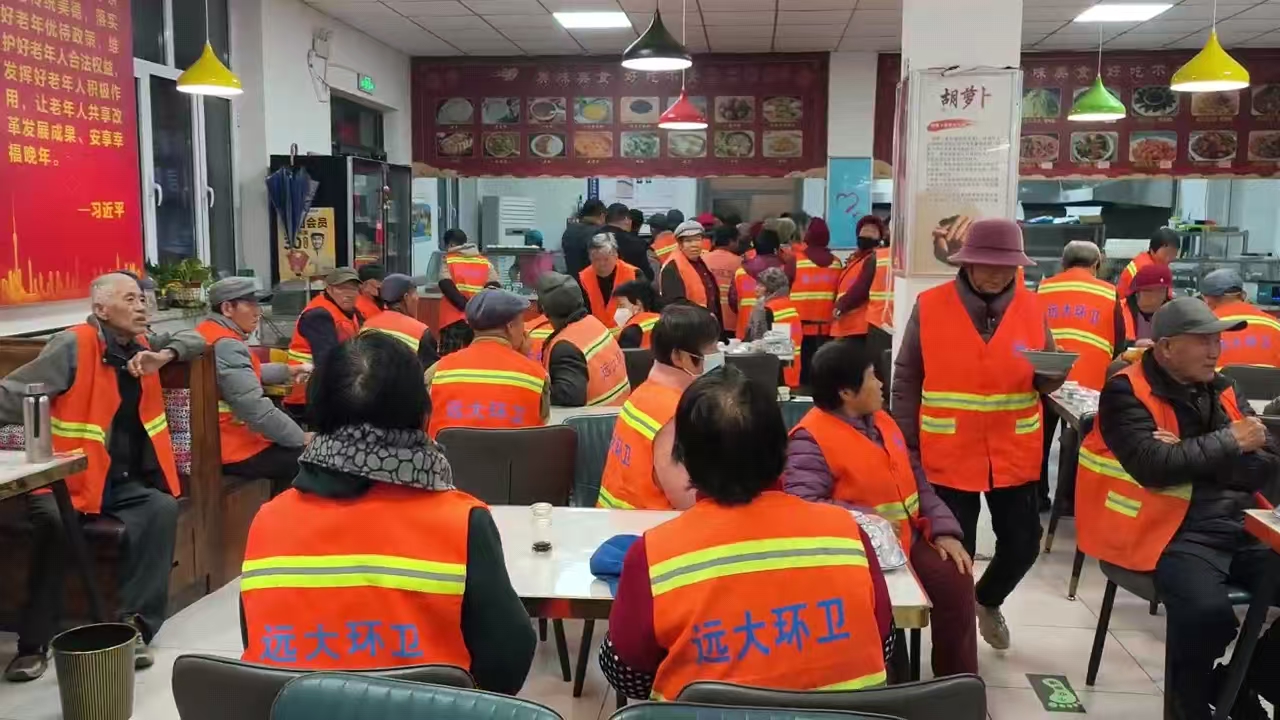 “挺好的,以前早饭只能凑合着吃点饼干,喝点开水。现在天冷了,能在屋里吃上热乎乎的饭菜,真的很感动,暖到心里了。”环卫工人缑玉素笑着说。