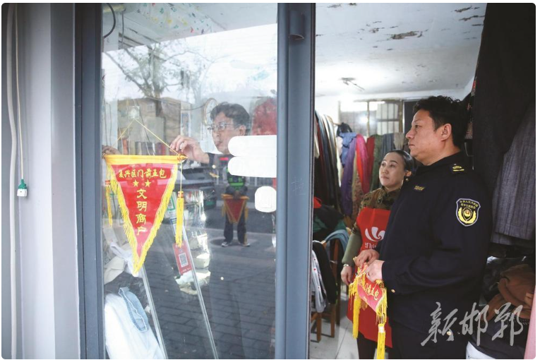 “您好,麻烦将摆在店外的商品收一下,搬入店内经营,谢谢。”执法人员边说边帮商户将商品搬入了店内。今年以来,丛台区精心组织,创新举措,对辖区沿街商户、企事业单位签订了一对一的“门前五包”责任书,进一步明确责任区域、责任单位(人)及必须履行的责任内容和要求,并将“门前五包”公示牌逐一上墙,持续营造城市环境齐抓共管的良好氛围。