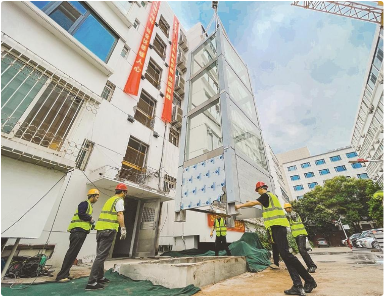 丛台区力都佳园小区电梯安装现场。(资料片) 邯郸新闻传媒中心记者 周绍宗 摄