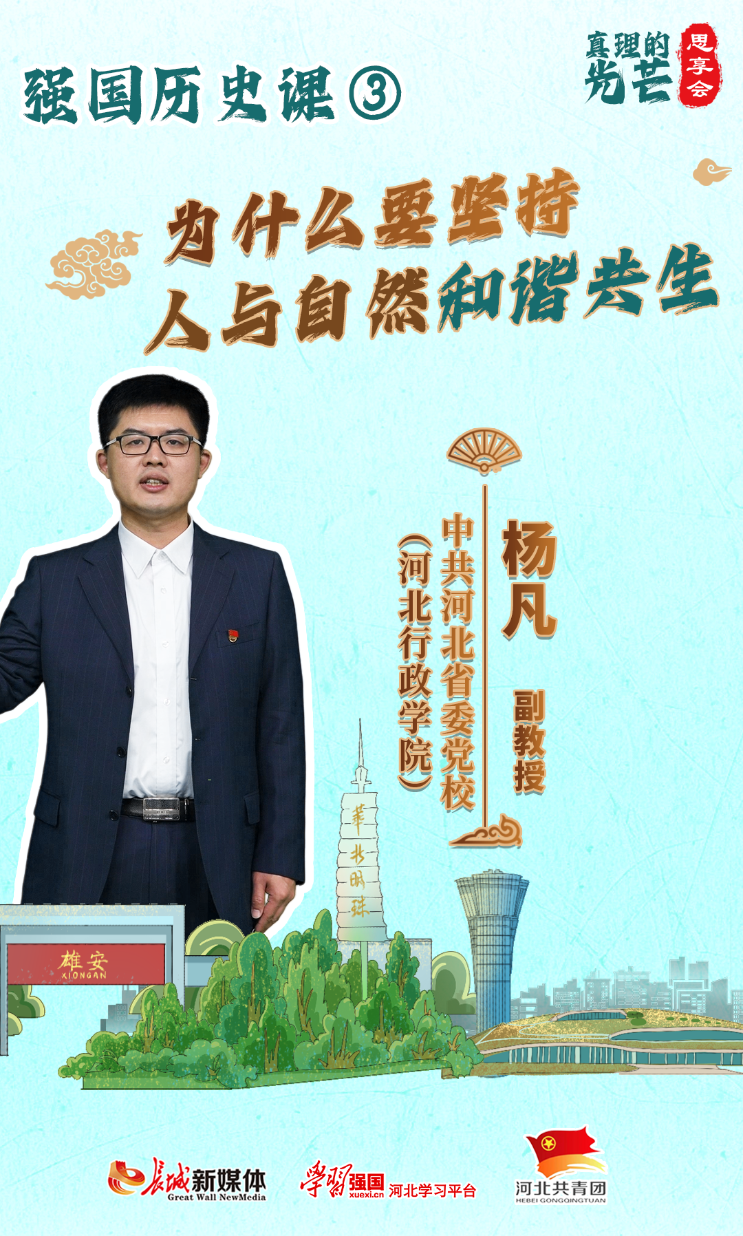 第三期节目由中共河北省委党校(河北行政学院)社会和生态文明教研部副教授杨凡,讲述“为什么要坚持人与自然和谐共生”。