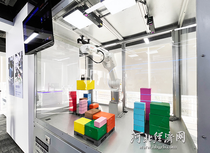 智能机器人正在进行纸盒混码。河北经济日报记者 刘朋朋 摄