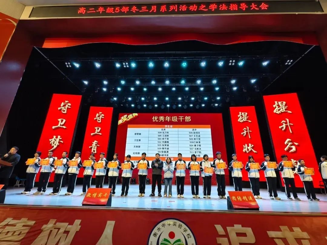 近日,为表彰先进树立榜样,激励全体再攀高峰,好衡水中学实验学校高二年级五部召开了冬三月学法指导大会。